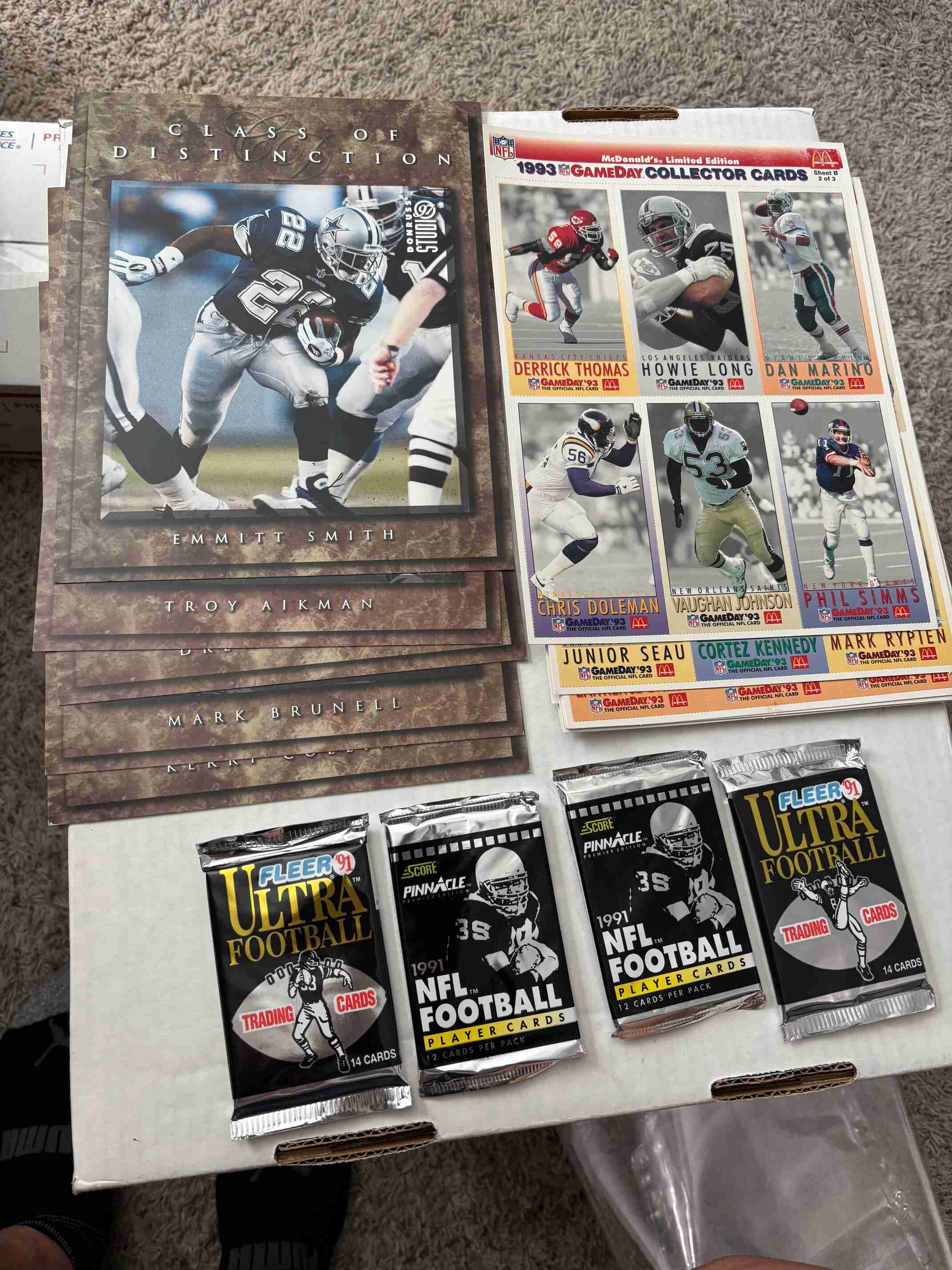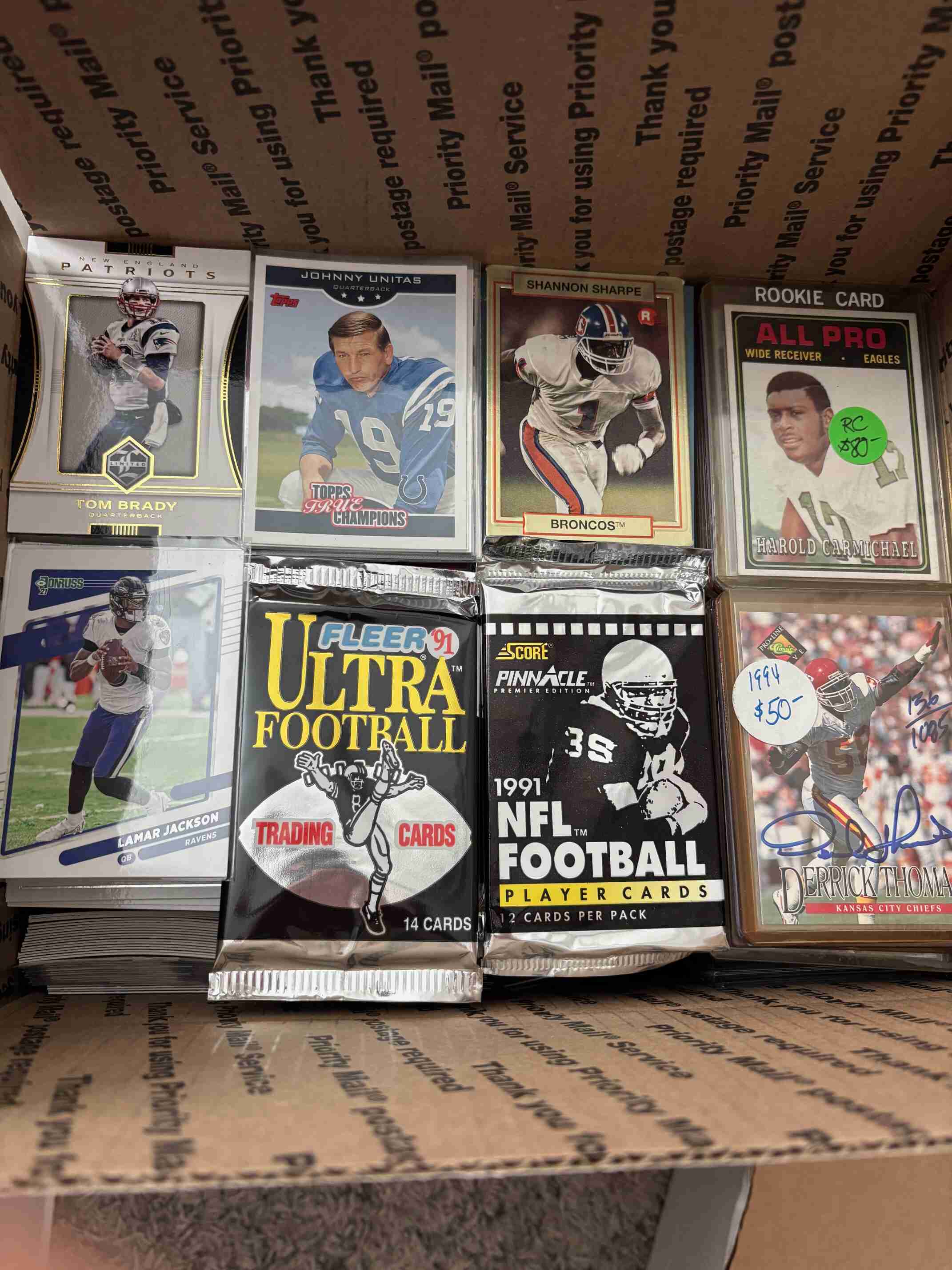 Huge clearance collection of 2500 Football cards loaded with high value vintage, rookies, stars, unopened packs, uncut sheets, and star portraits. all in great condition. You will receive everything shown in the photos and more. I am having a complete clearance of my 2,000,000 card collection, so please check out my other auctions for more great deals.