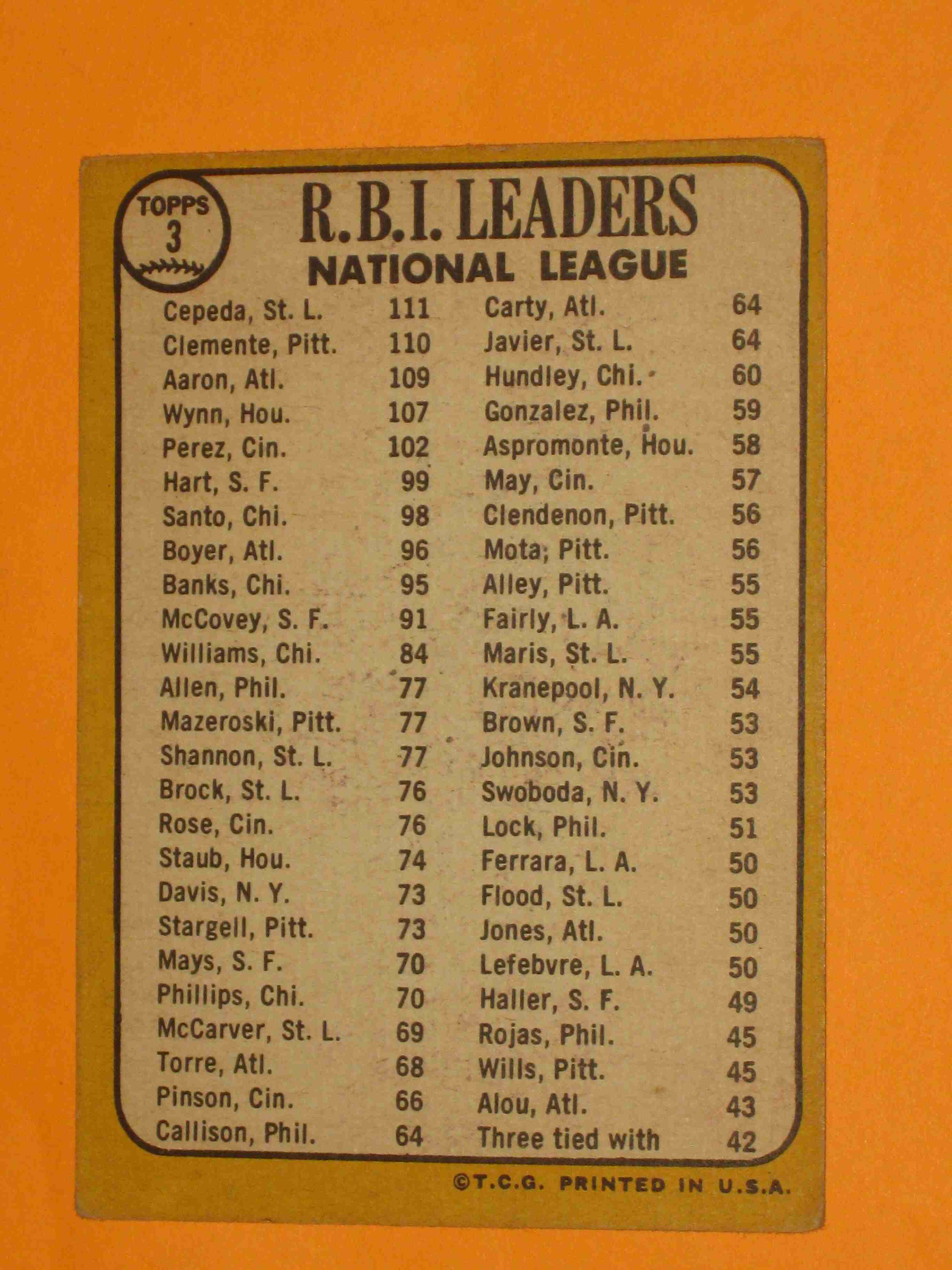 1968 Topps NL RBI Ldrs #3 Cepeda Clemente Aaron