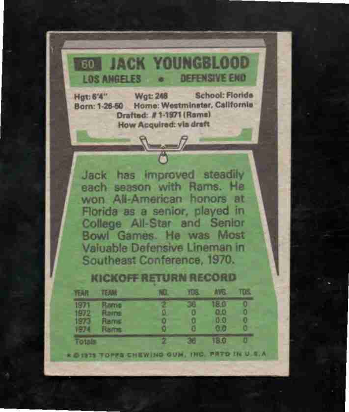 1975 Topps # 60 HOFer JACK YOUNGBLOOD Rams