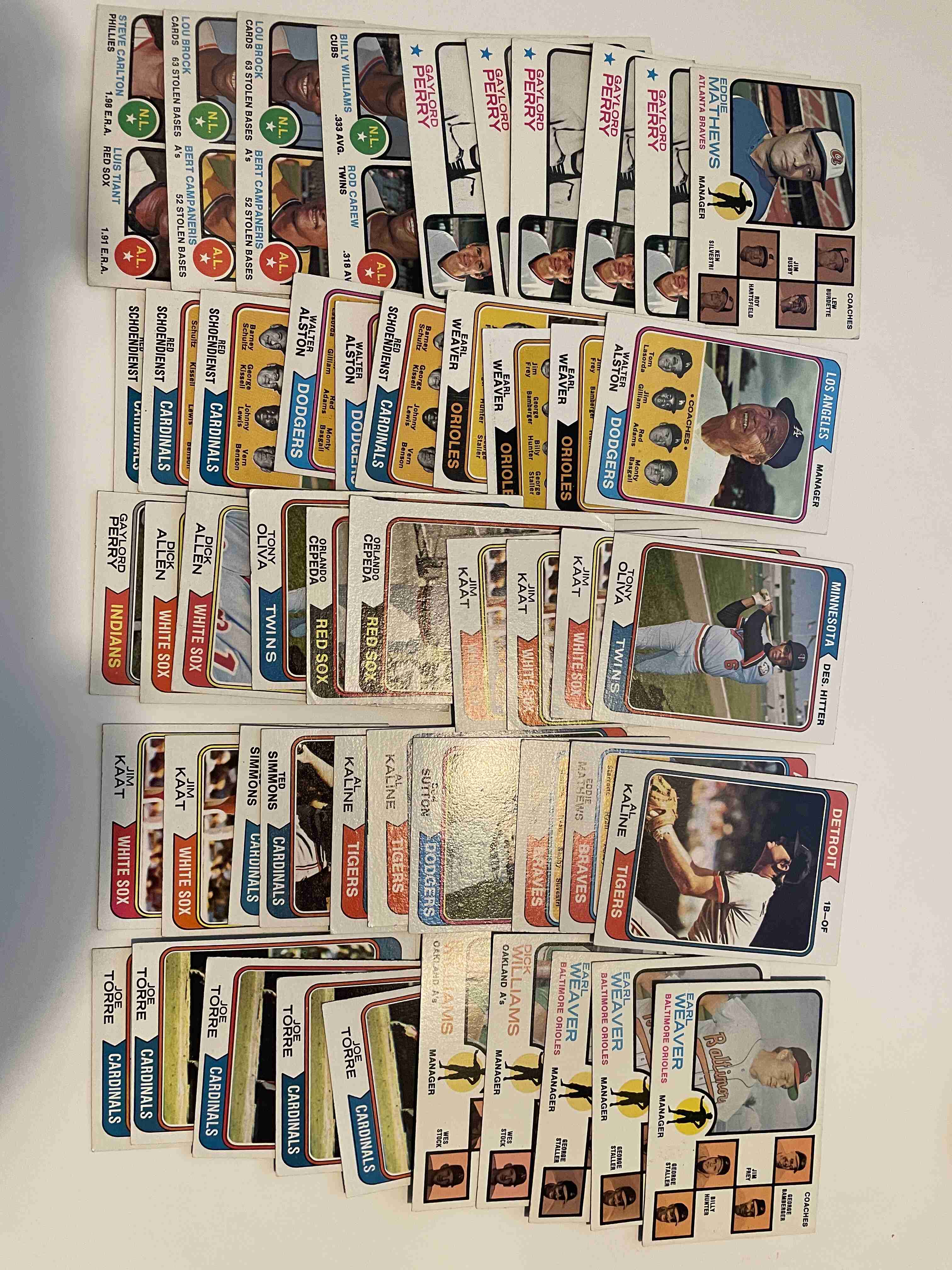 Over 90 Stars and HOFer's here. Rice, Carlton, Weaver, Oliva, Kaat, Matthews, Perry, Parker, Perez, See pic for all the cards. There is Duplication as well. Check out my other lots as well.
