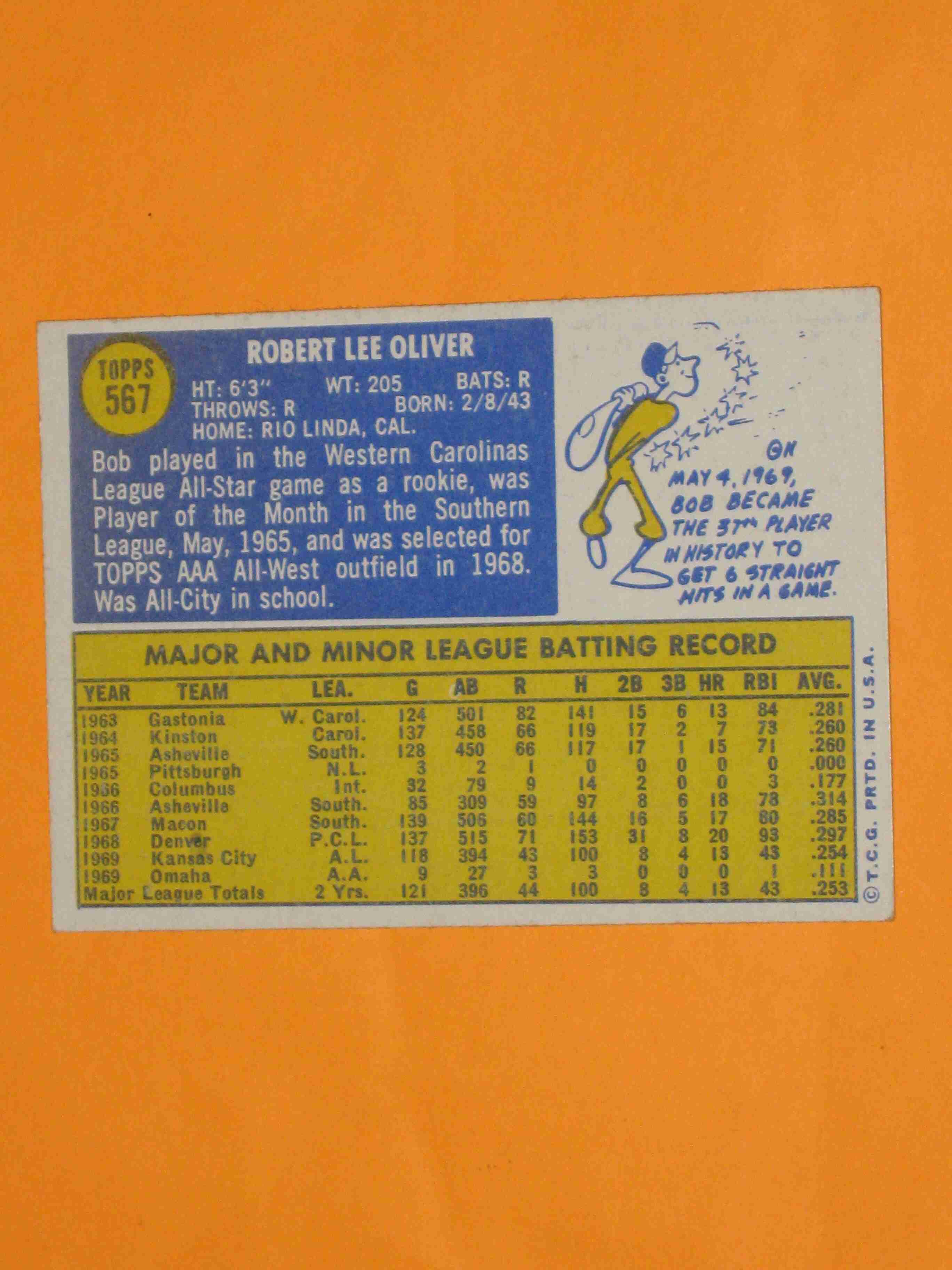 1970 Topps Bob Oliver #567 Kansas City Royals NICE