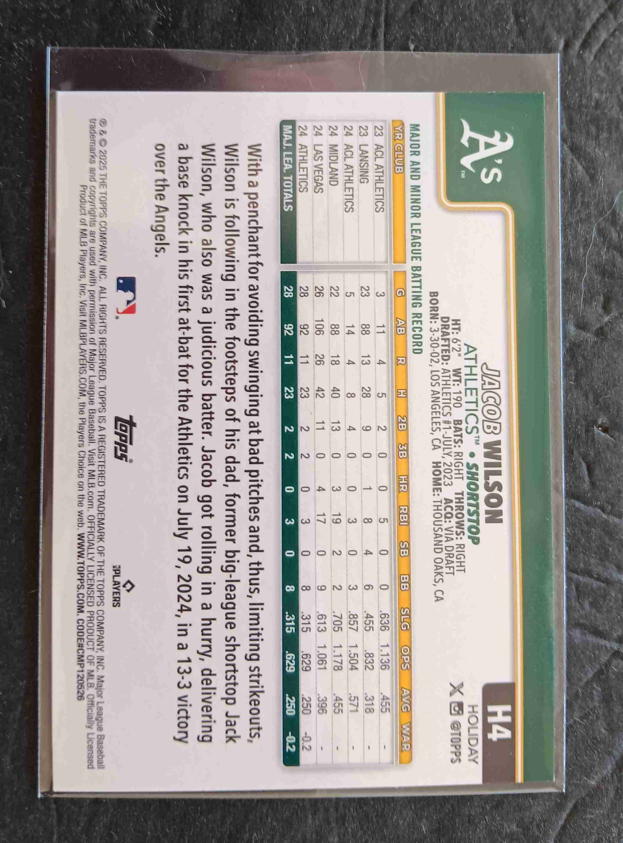 This auction is for a 2025 Topps Holiday Jacob Wilson Blue Lights