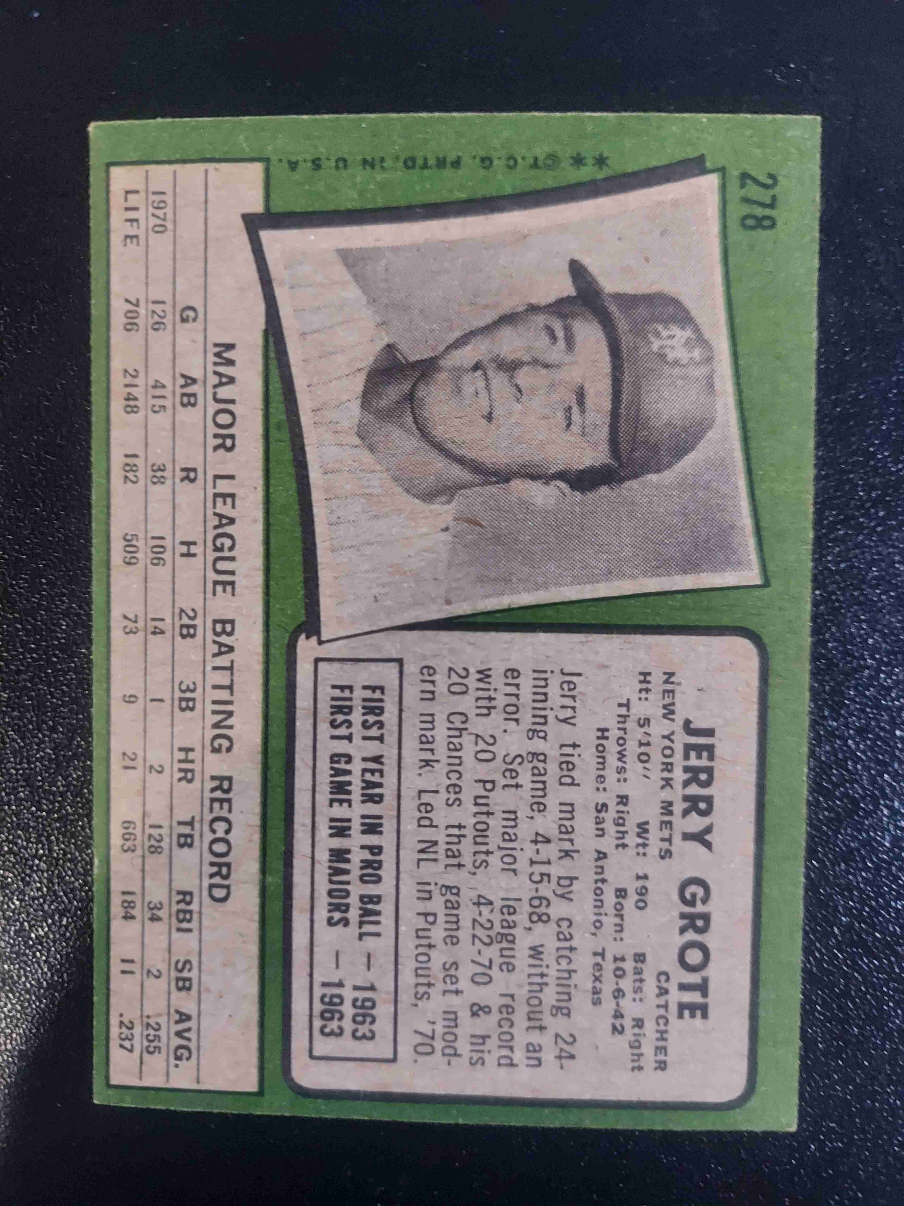 1971 TOPPS # 278 JERRY GROTE NY METS