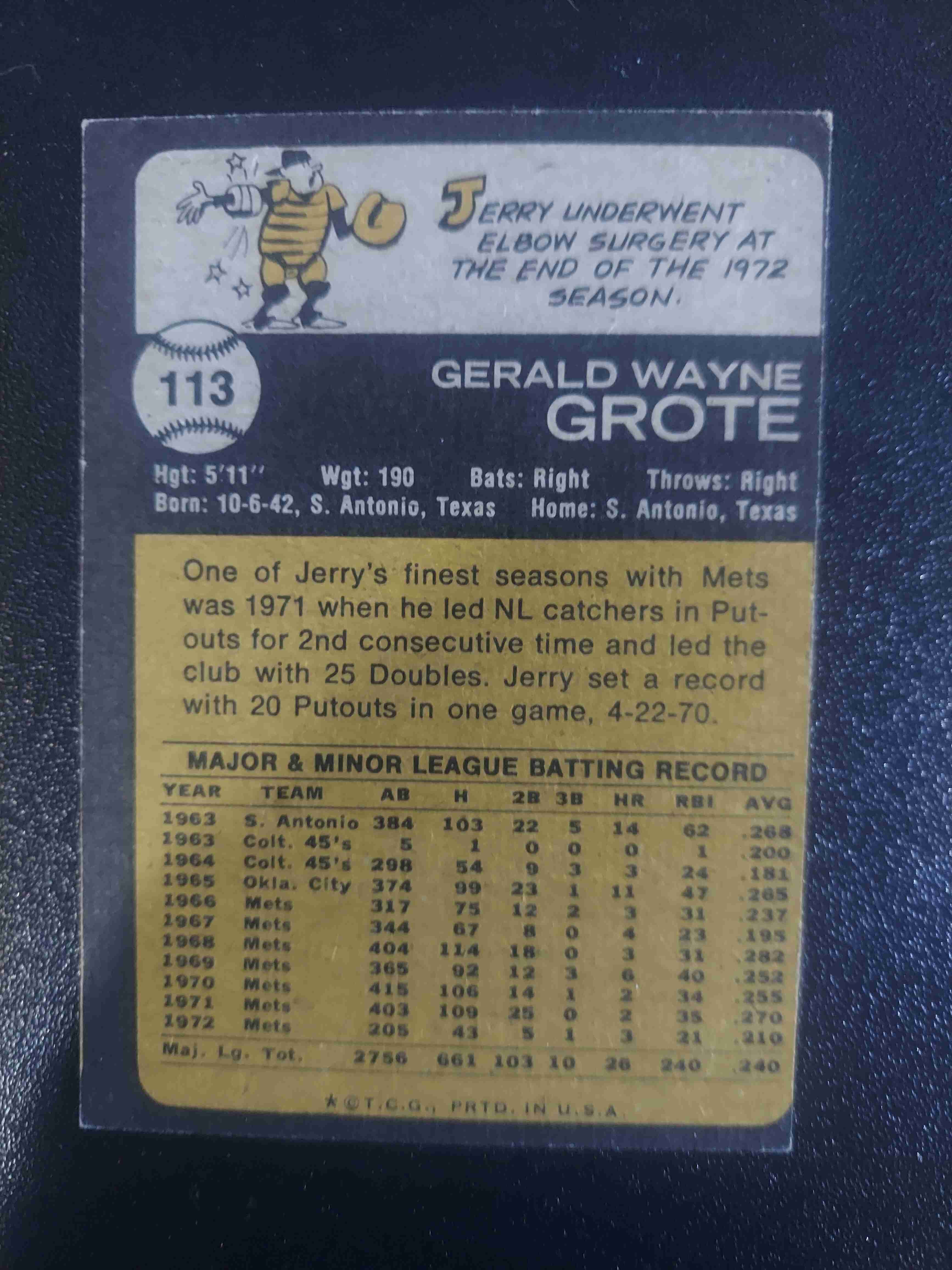1973 TOPPS #113 JERRY GROTE NY METS