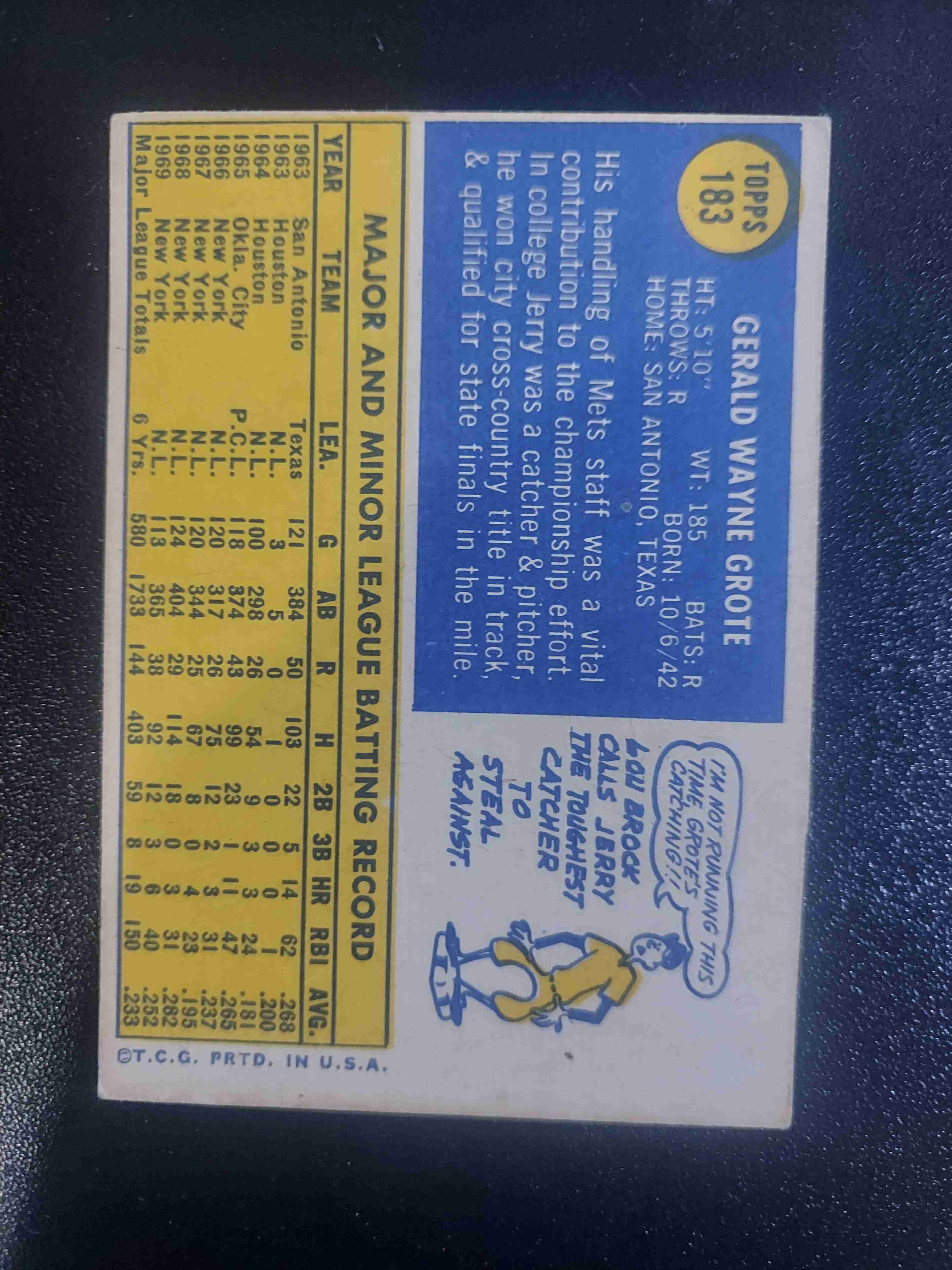 1970 TOPPS #183 JERRY GROTE NY METS
