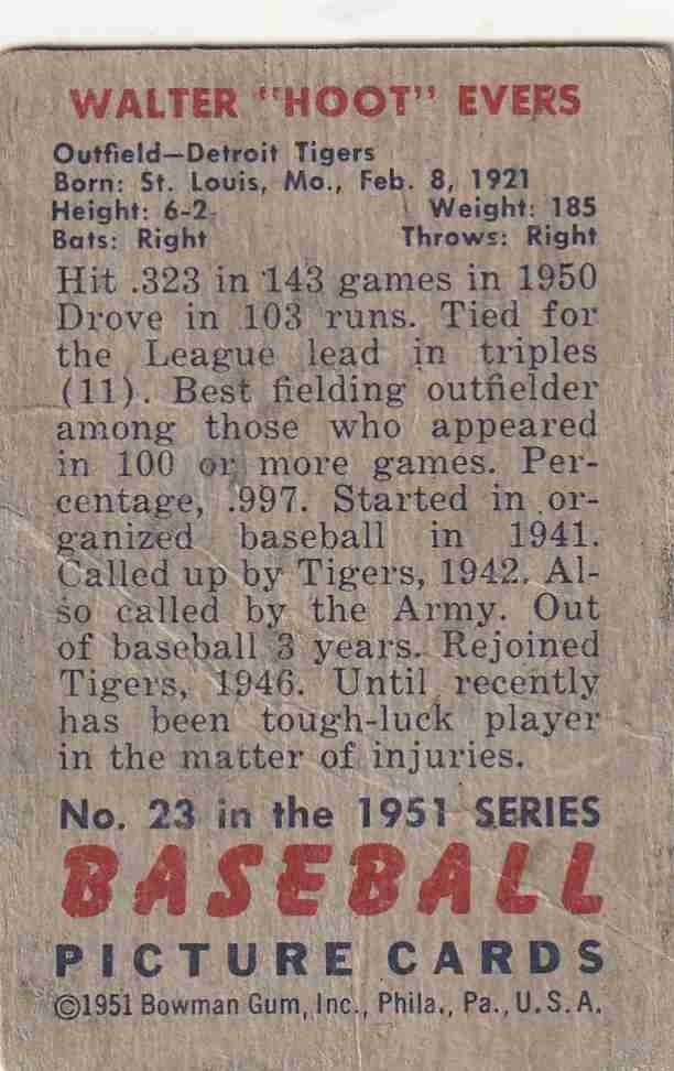 1951 Bowman #23 Walter "Hoot:" Evers Tigers