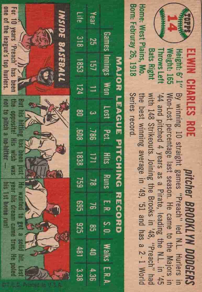 1954 Topps #14 Preacher Roe Brooklyn Dodgers