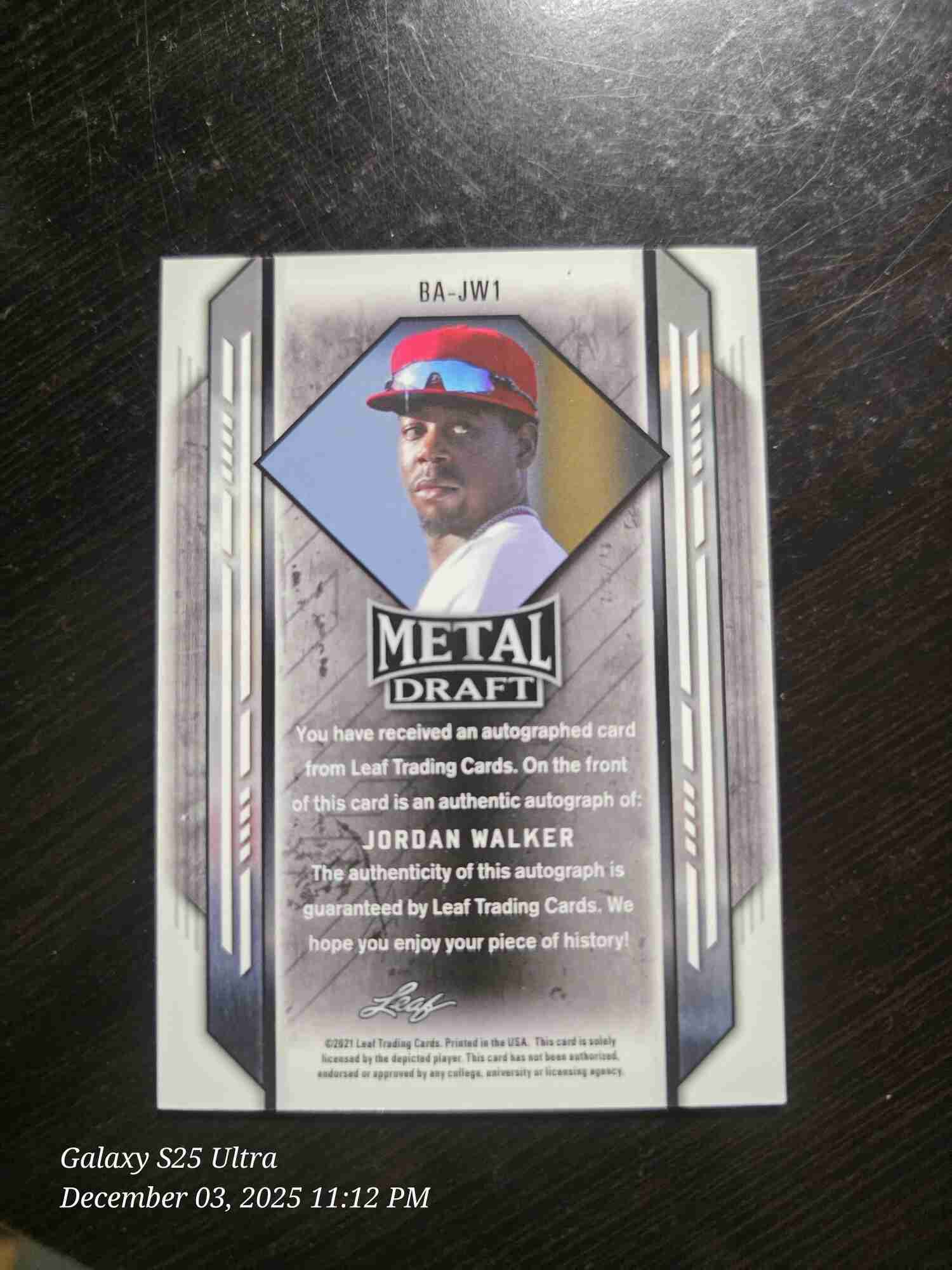 2021 Leaf Metal Draft Jordan Walker Auto. Card is in Nr-Mt condition.