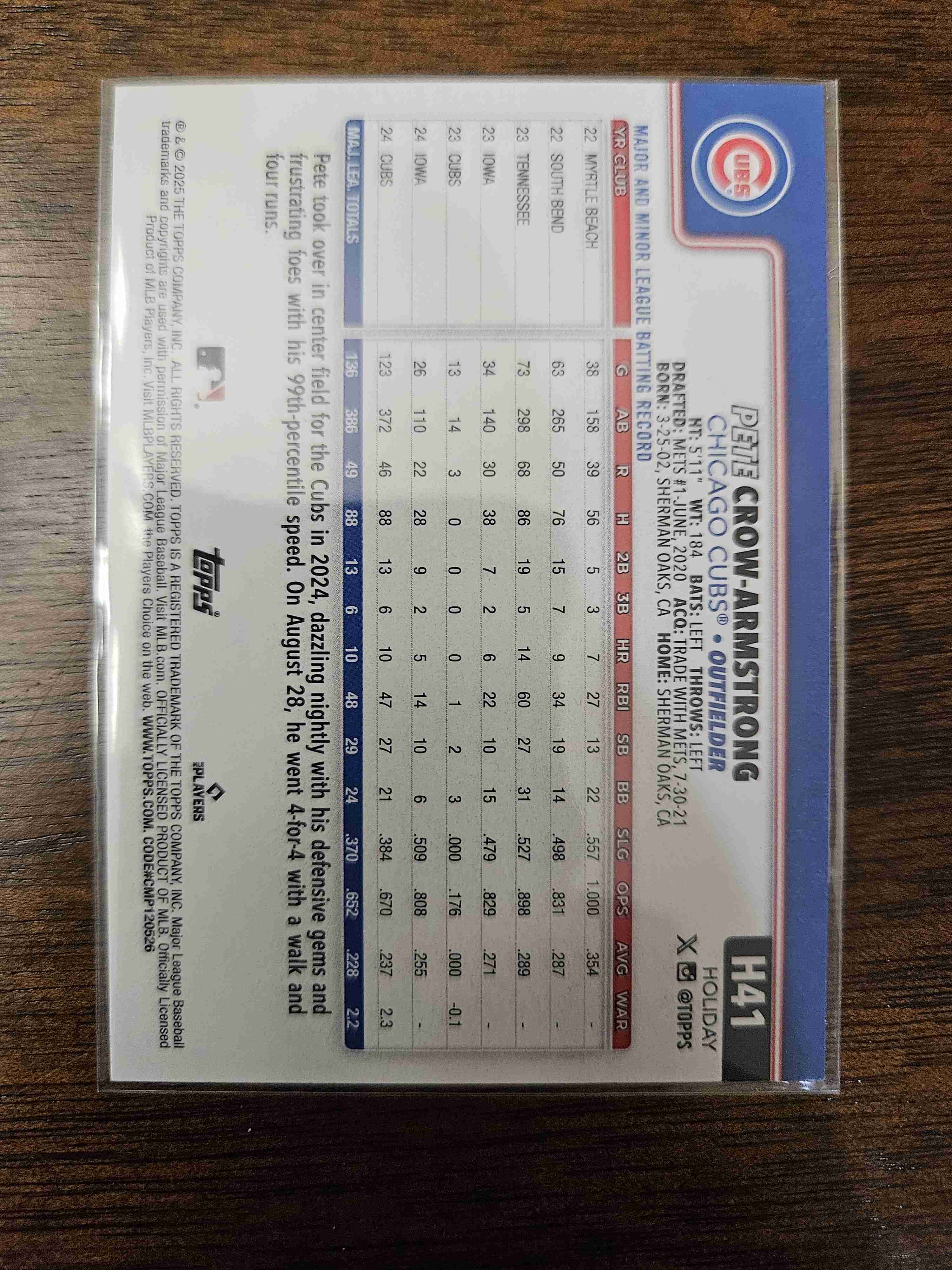 Pete Crow-Armstrong 2025 Topps Holiday Yellow Lights Parall