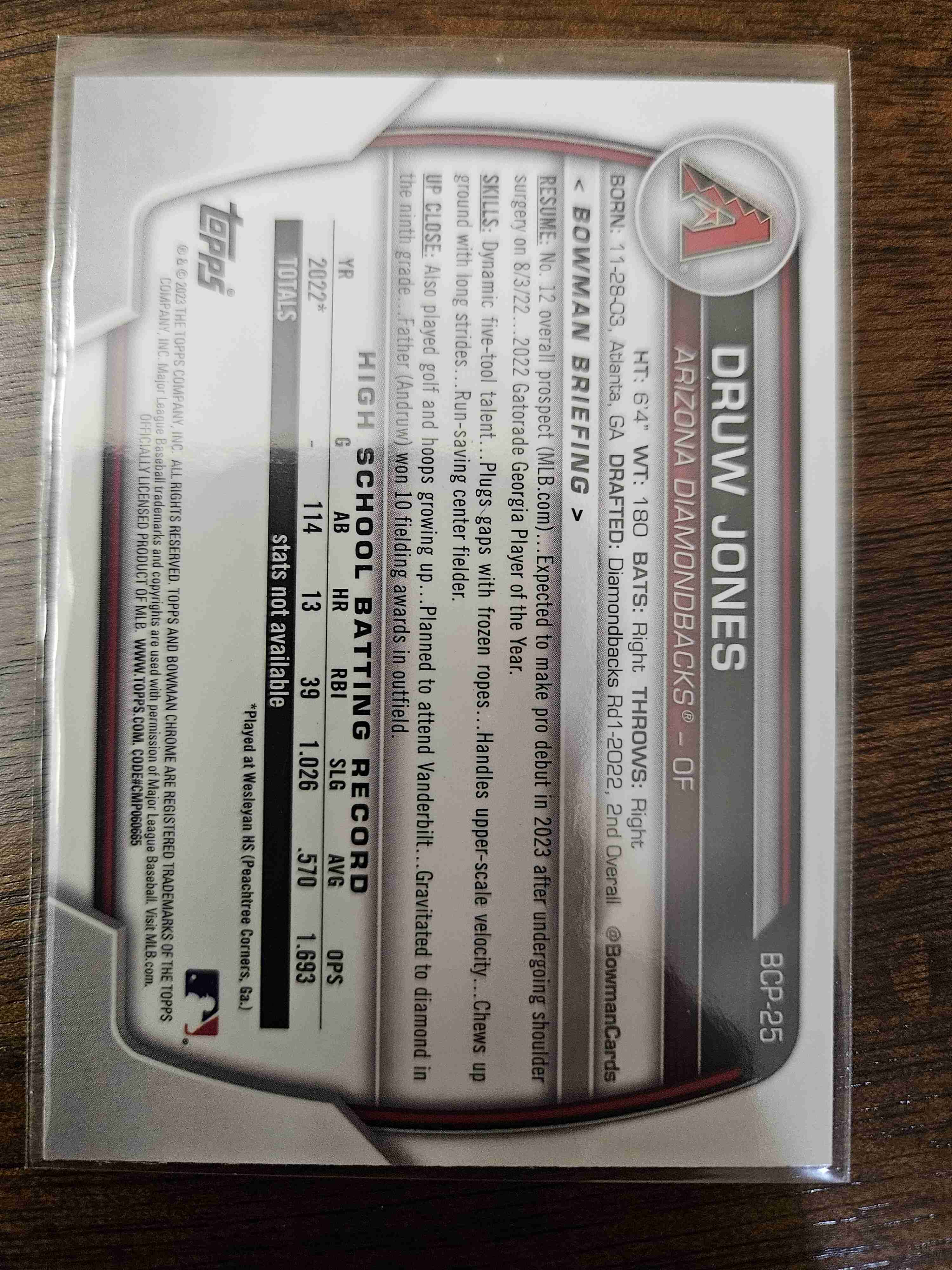 Druw Jones 2023 Bowman Chrome 1st Prospect #BCP-25