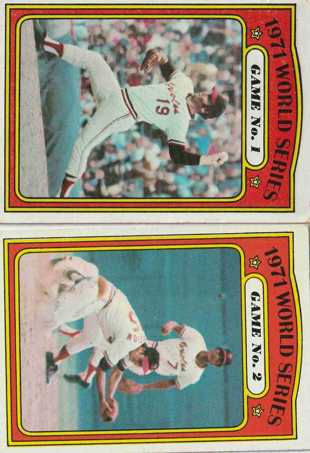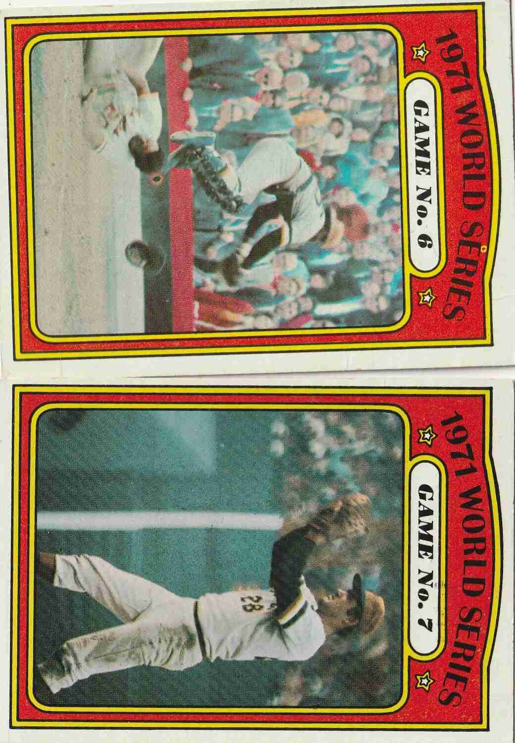 # 221 222 '71 AL NL Playoff Champs (EX+/Better) mild tip blemishes #'s 223 224 '71 WS Games 1 & 2 (EX+/Better) mild tip wear #'s 228 229 '71 WS Games 6 (EX+/Better) Game 7 (EX/NM)
