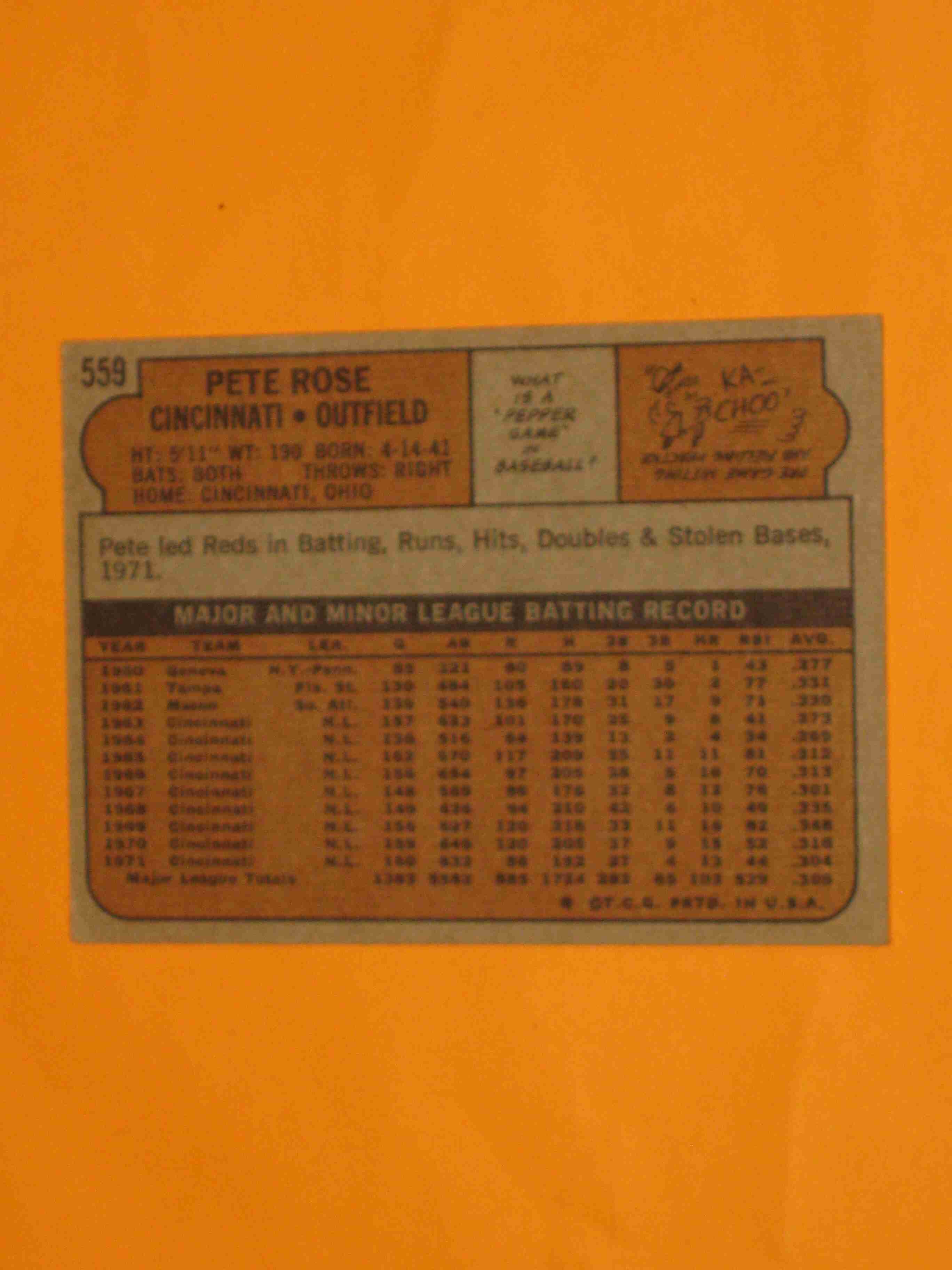 1972 Topps Pete Rose #559 Cincinnati Reds NICE