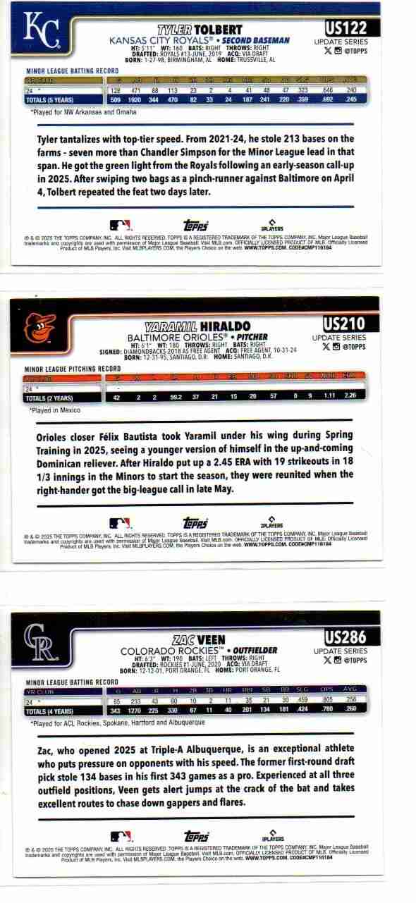 TYLER / YARAMIL / ZAC - 2025 TOPPS UPDATE FOIL