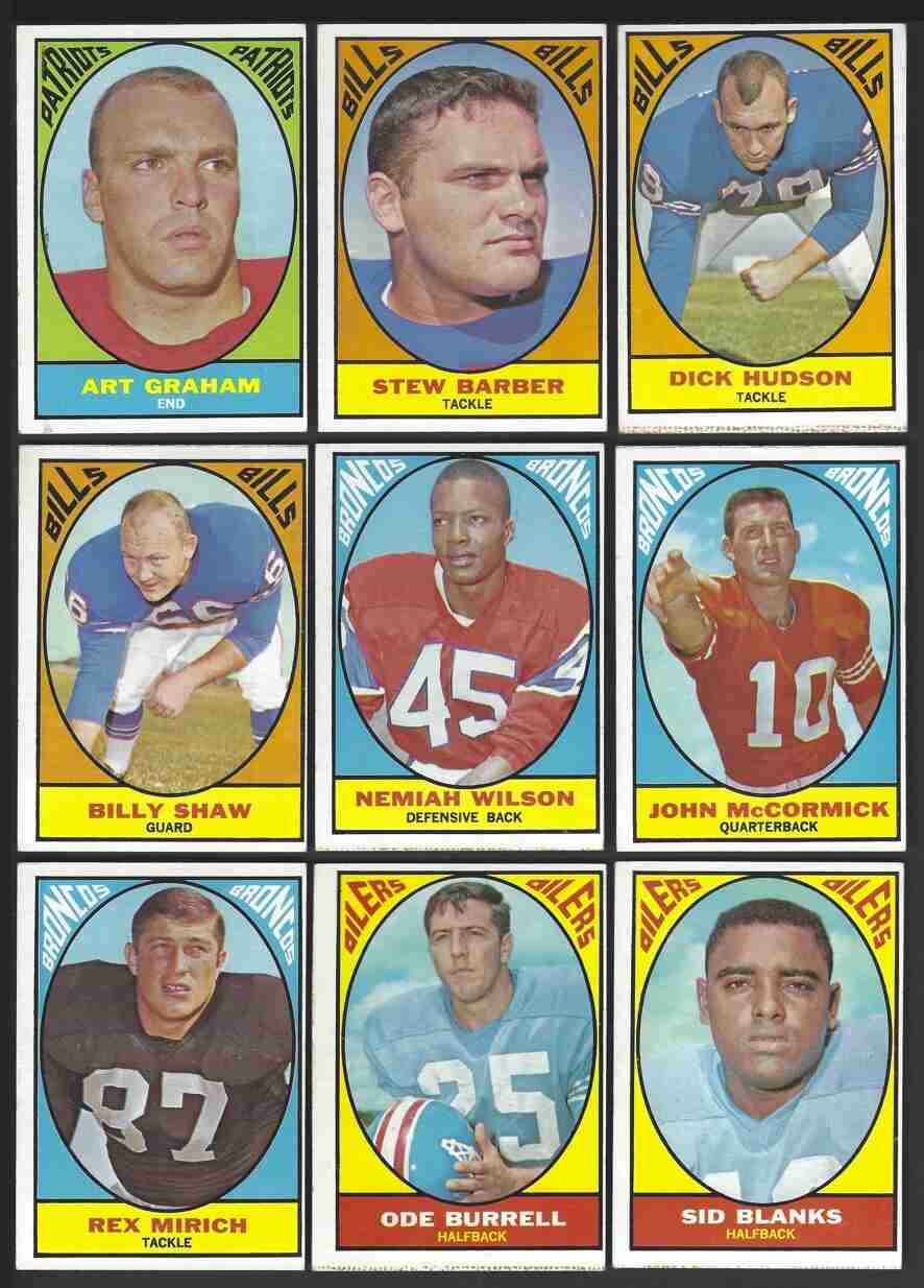 1967 Topps Football Lot (17). No's-12,18,22,28(HOF),30(RC),31,32,48,51,84,86, 87,92,95,110,124,125(HOF). Excellent large lot of 1967 Topps Football cards. This is a higher-grade lot. Cards have minor flaws - most have nice corners; a few have a print mark on bottom of card. Overall, nice lot! lease review scans carefully for condition.