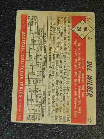 1953 Bowman B&W #24 Del Wilber - G/VG - BV $40