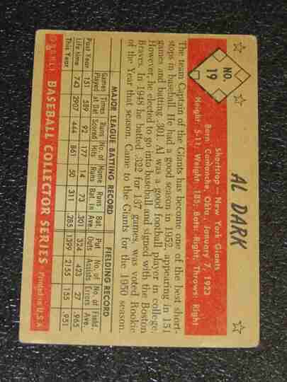 1953 Bowman Color #19 Al Dark - G/VG - BV $40