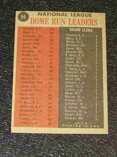 1962 Topps #54 Cepada/Mays/Robinson - EX/EX+ - BV $50