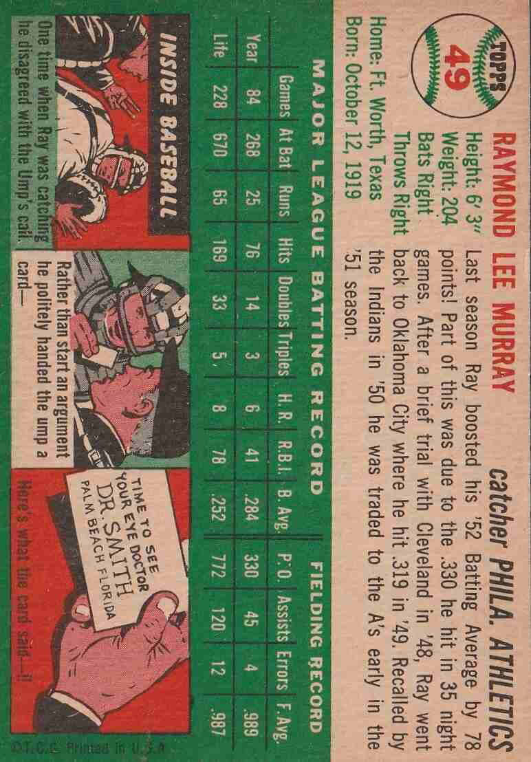 1954 Topps #49 Ray Murray Philadelphia Athletics