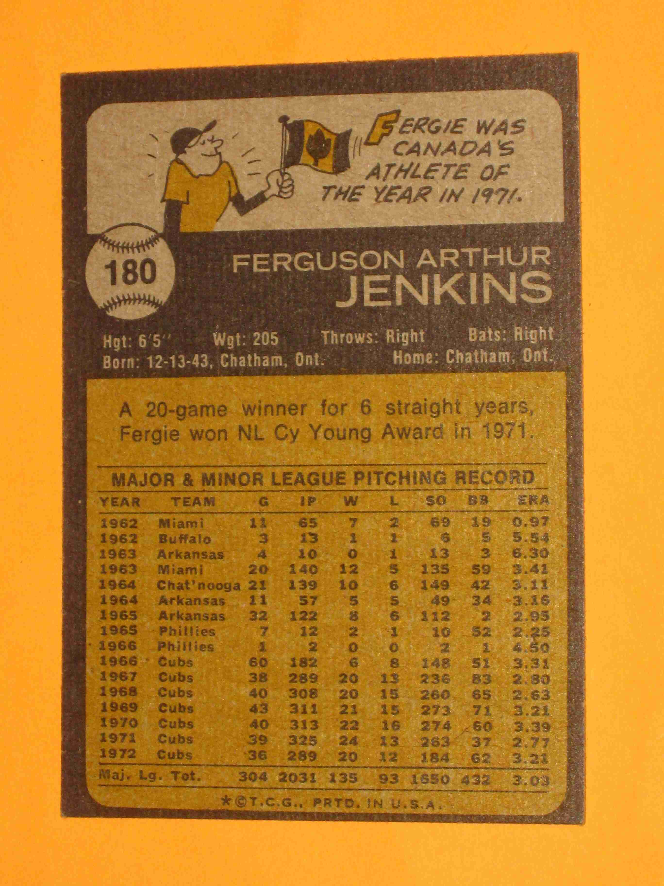 1973 Topps Fergie Jenkins #180 Chicago Cubs NICE