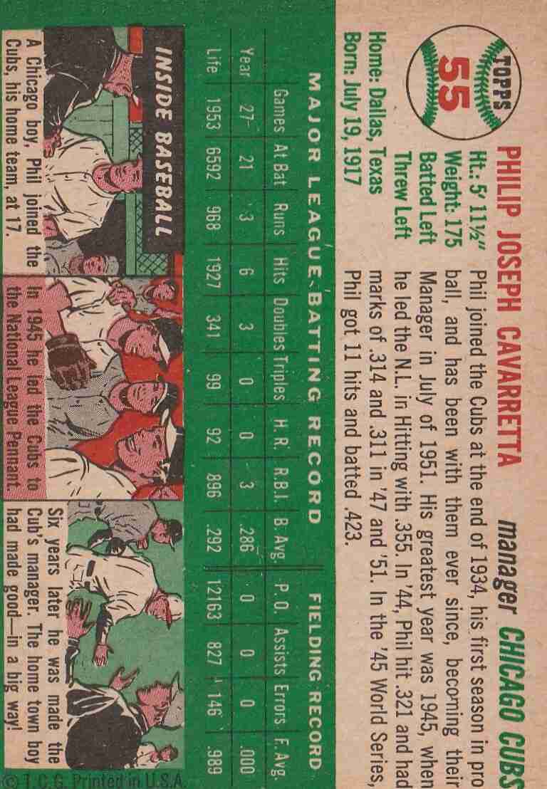 1954 Topps #55 Phil Cavarretta Cubs Mgr.