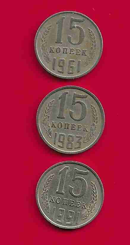 RUSSIAN 15 KOPECK COIN LOT 1961/1983/1991