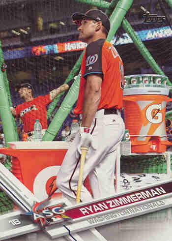 The card shows Zimmerman in an orange uniform at the batting cage as opposed to the base card mid toss.