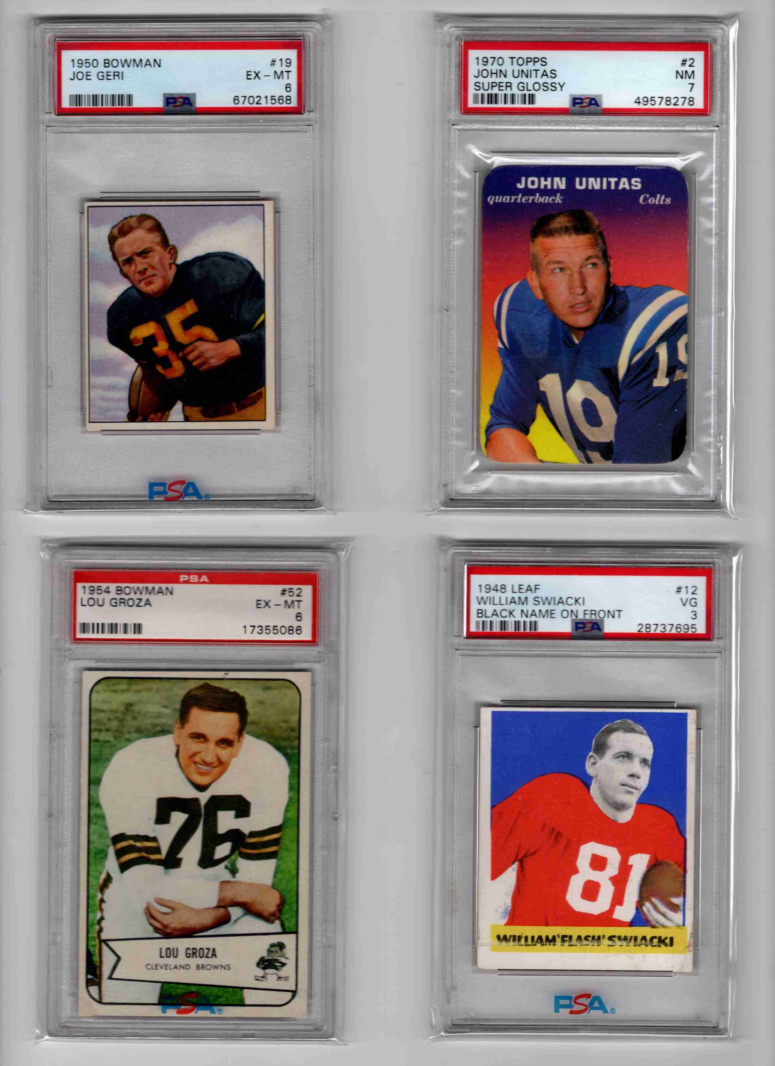 GRADED VINTAGE LOT UNITAS, BUTKUS, GROZA HOF, RC PSA MORE