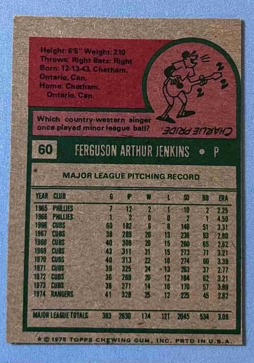 75 ToppsMini FERGIE JENKINS #60 HOF!