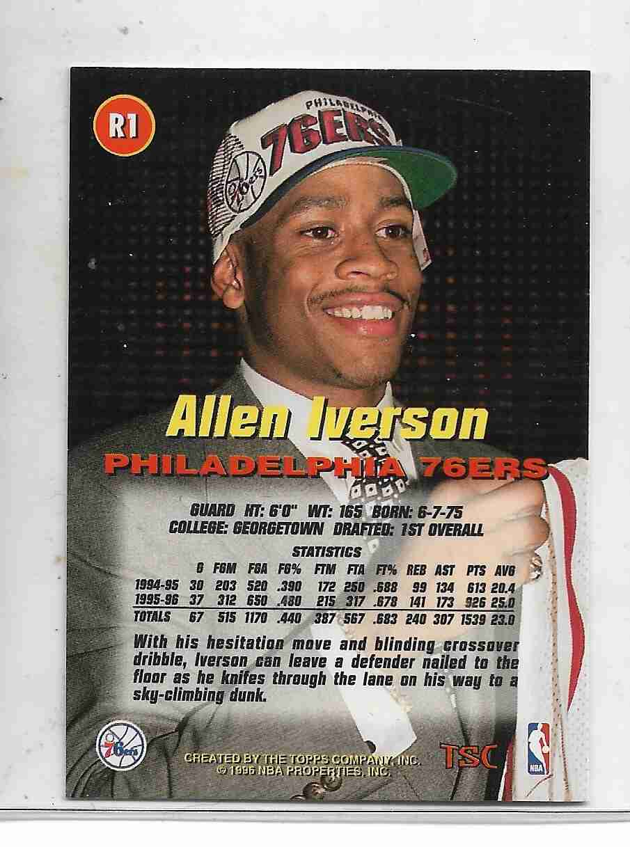 1996 Topps SC #R1 ~ Allen Iverson Philadelphia 76ers Rookie