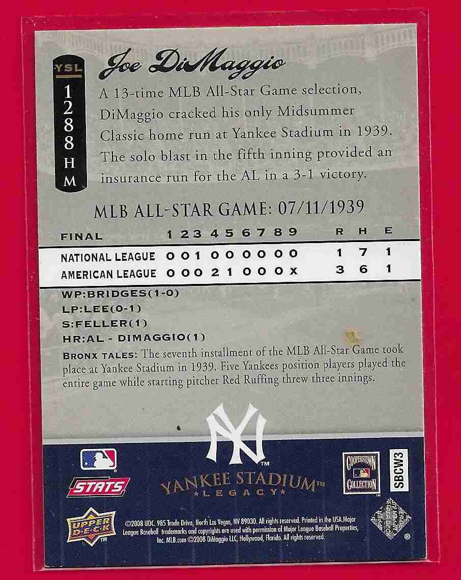 2008 UD YANKEE STADIUM LEGACY #YSL1288 JOE DIMAGGIO