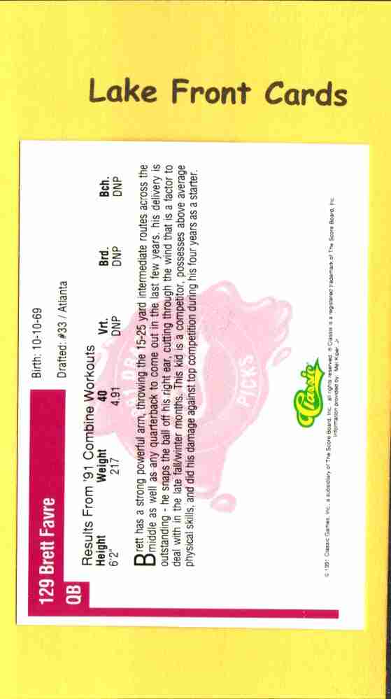Brett Favre #129 – 1991 Classic Draft Picks (Rookie Card)