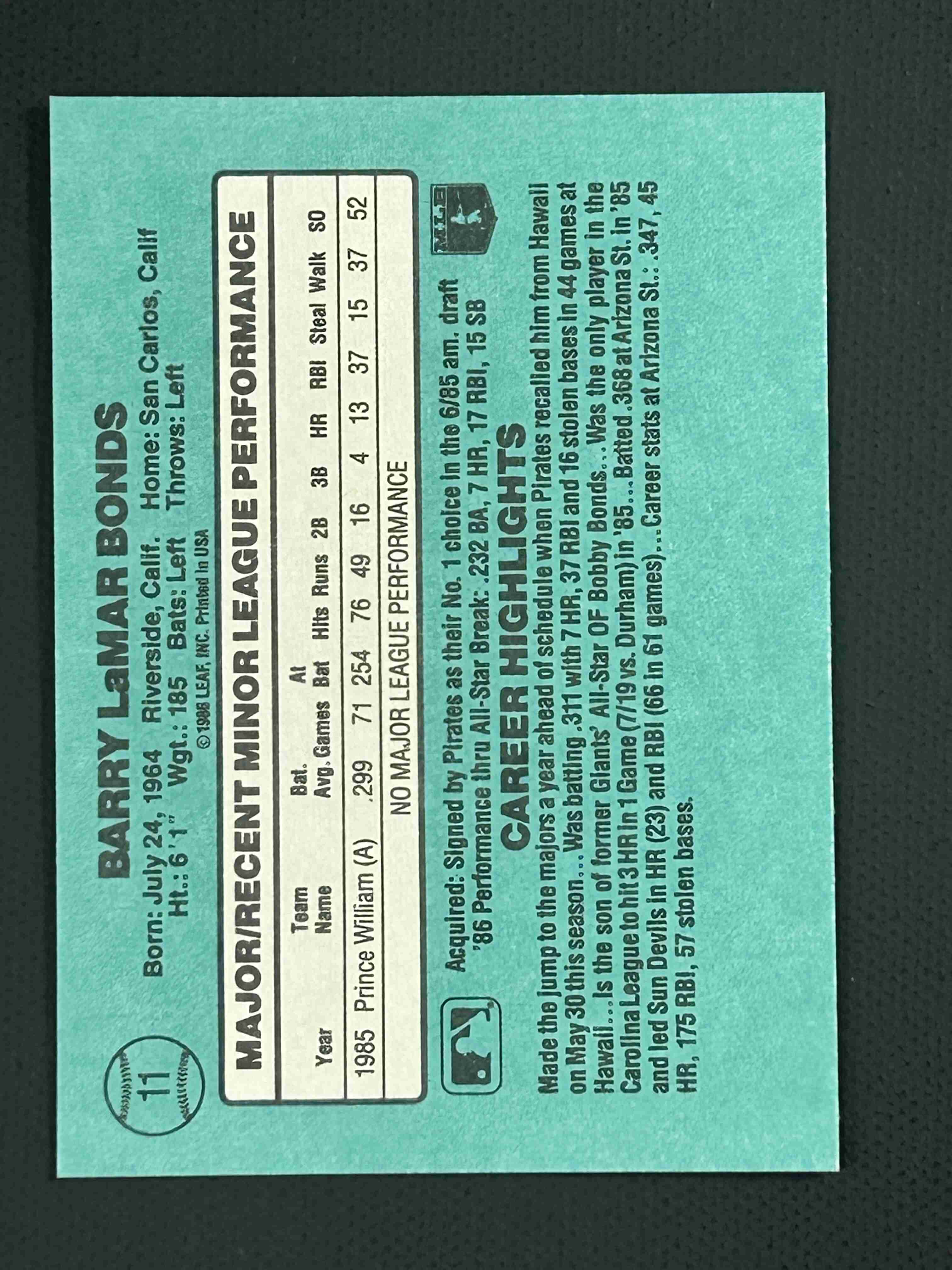 1986 Donruss The Rookies #11 Barry Bonds EX-MT