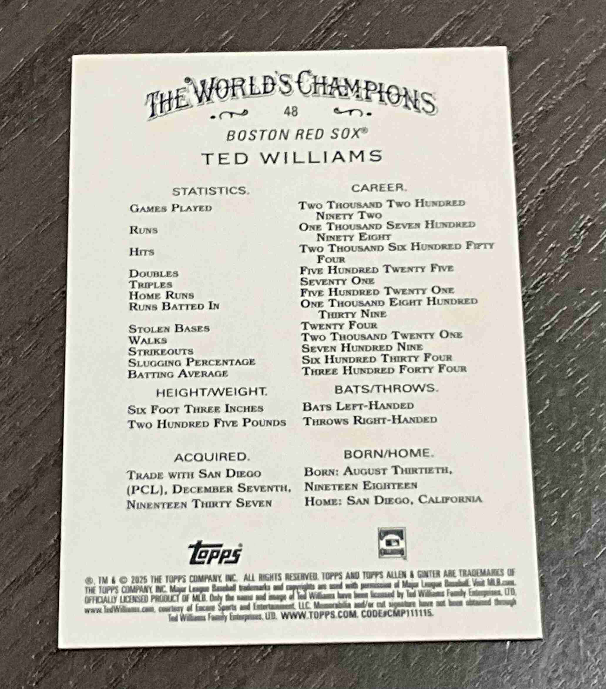 Ted Williams Silver Portrait 2025 Allen & Ginter Red Sox
