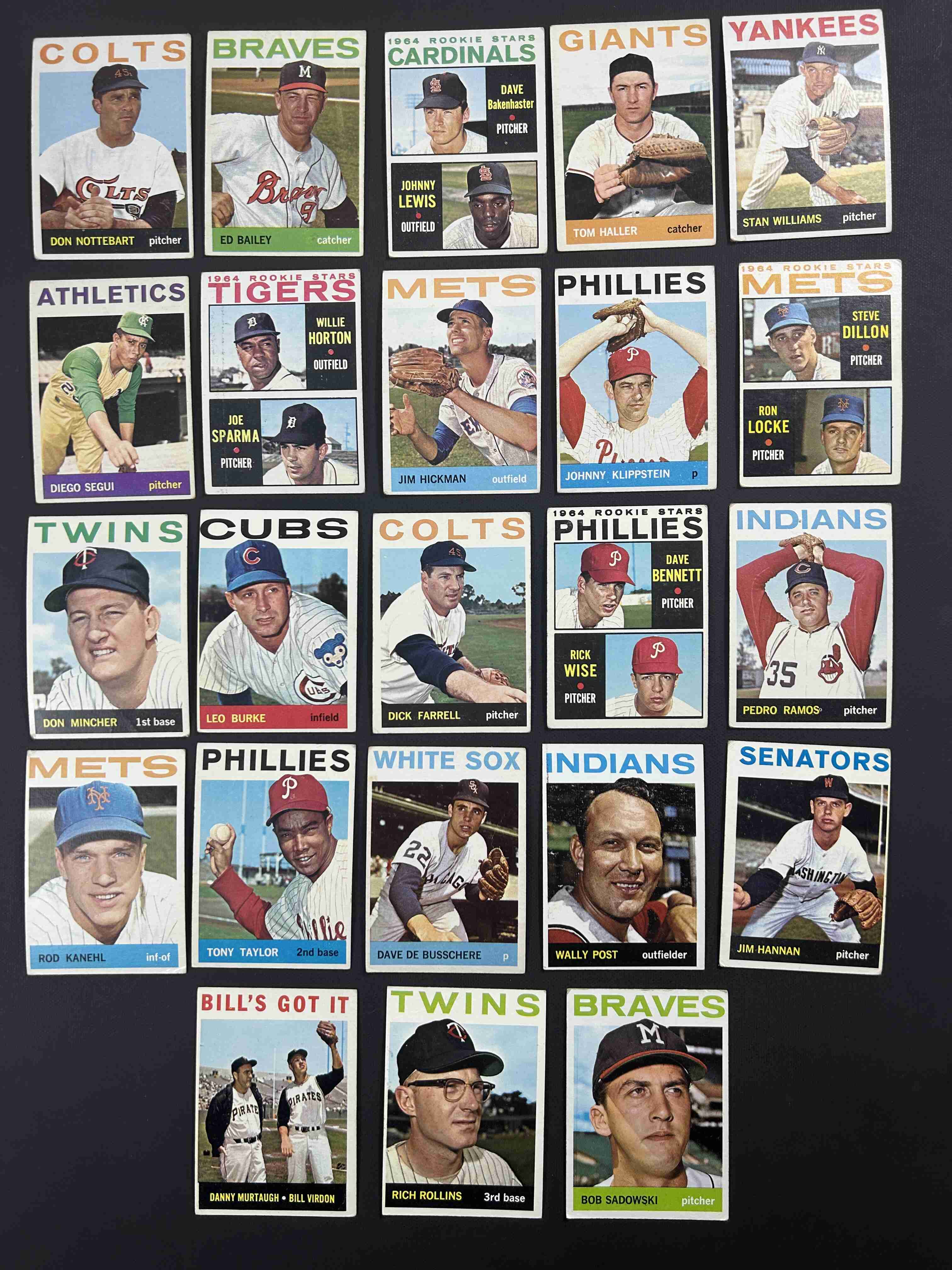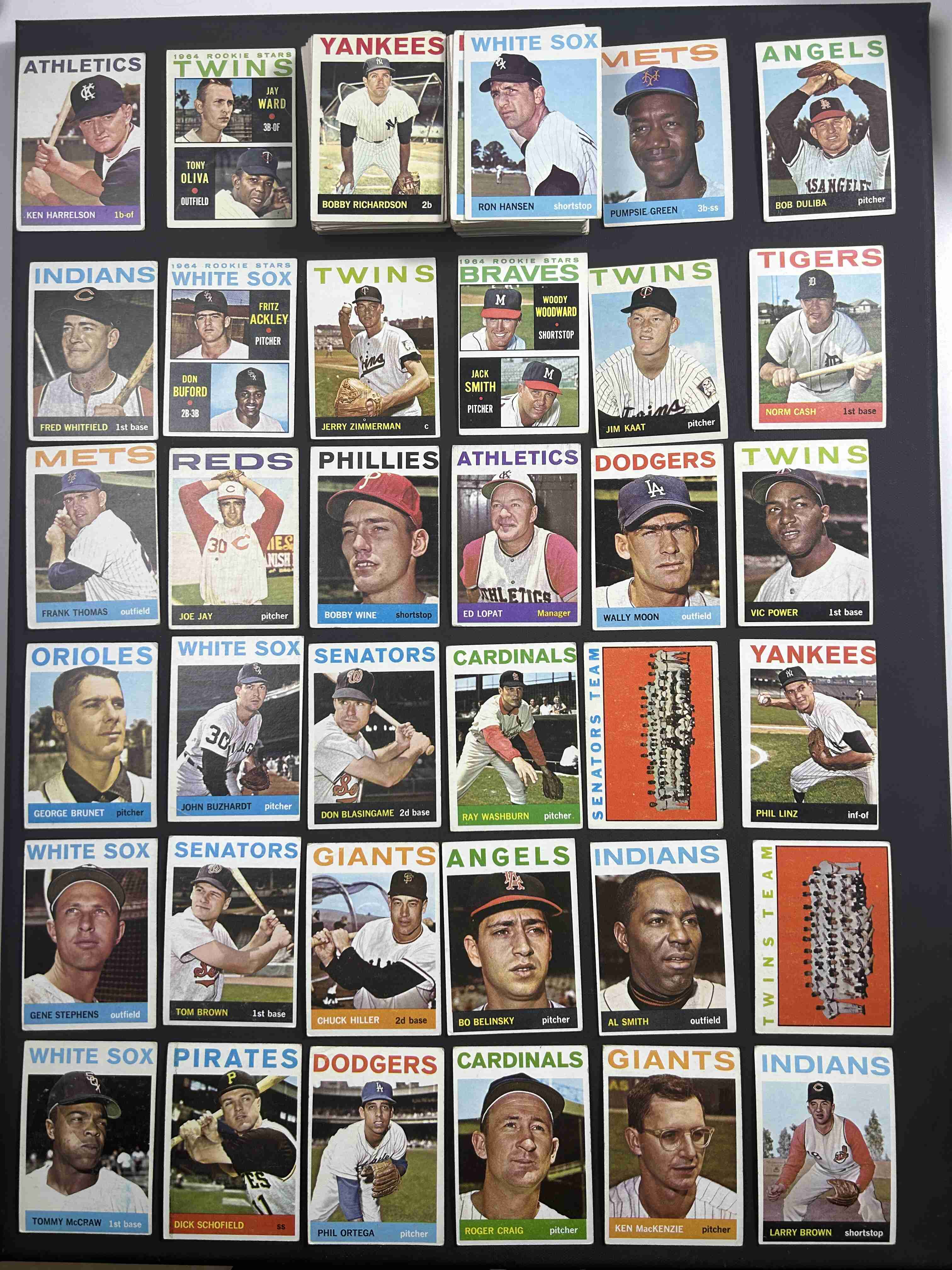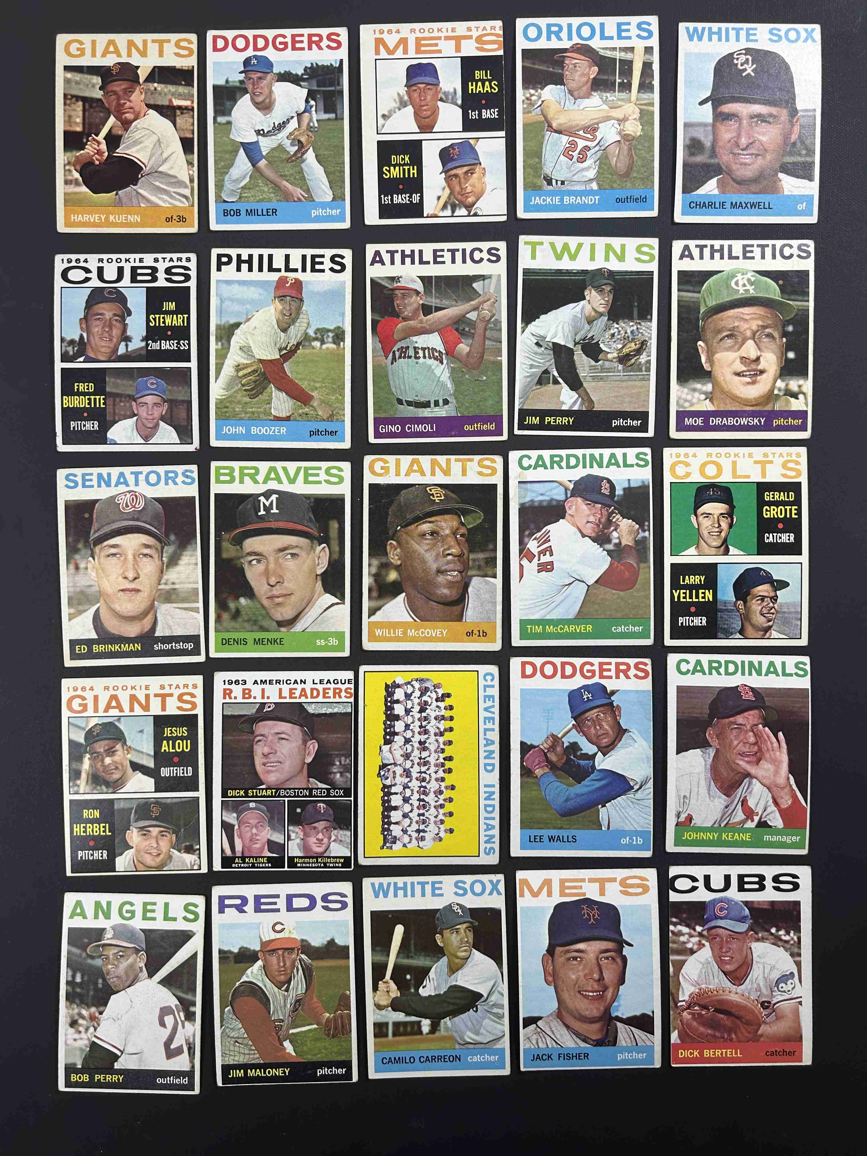 120 different 1964 Topps Baseball cards. Condition ranges from GOOD to VG with about 25% being VG. The Willie McCovey is in Fair condition. Lot includes 10 High #'s. #'s 12,16,26,34,42,46,47,48,53,64,68,77,79,80,83,84,85,