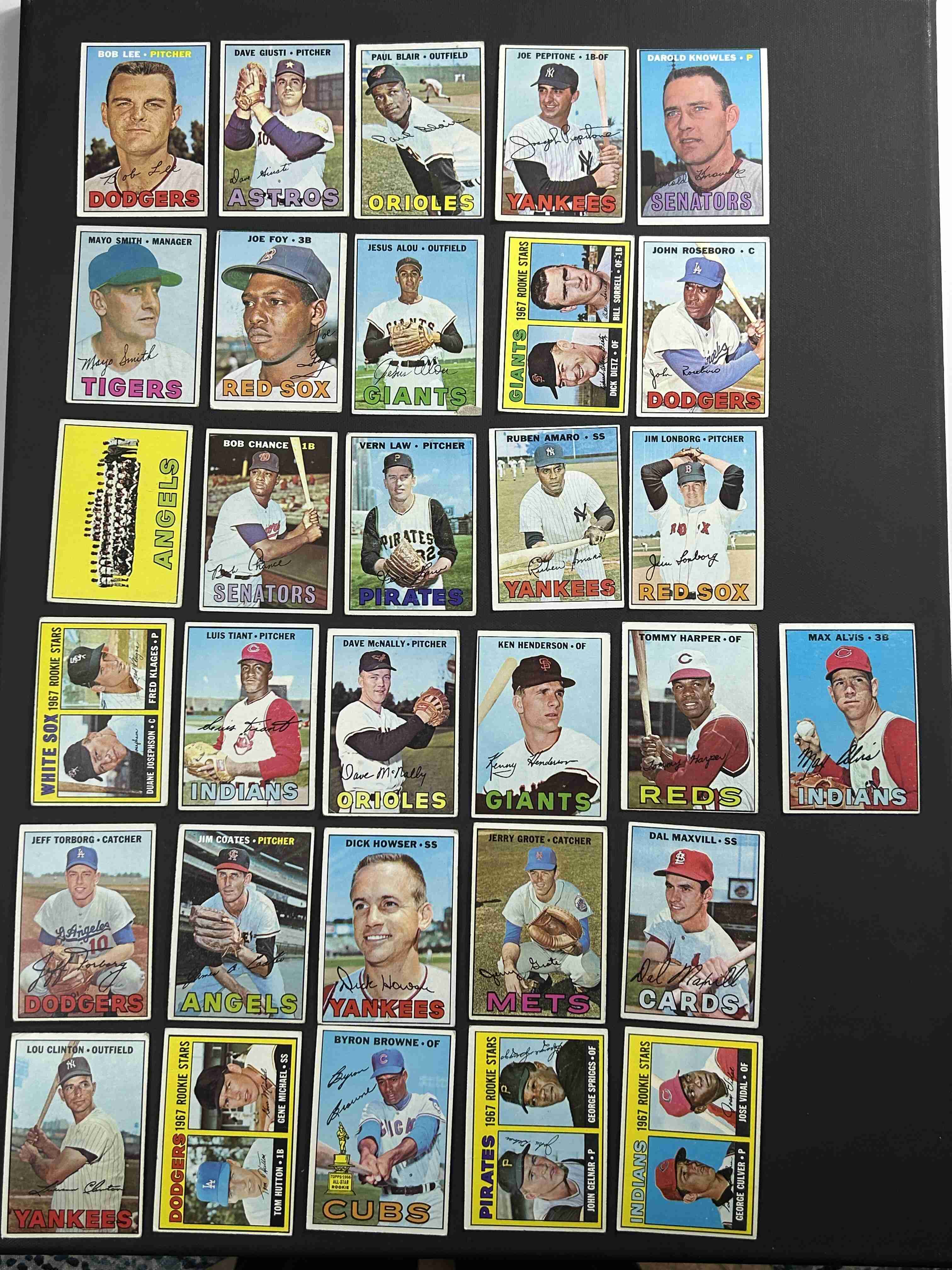 103 different 1967 Topps baseball cards. Condition ranges Poor to VG with most of them bein GOOD condition. #'s 4,7,9,13,15,23,25,27,34,44,46,47,48,50,