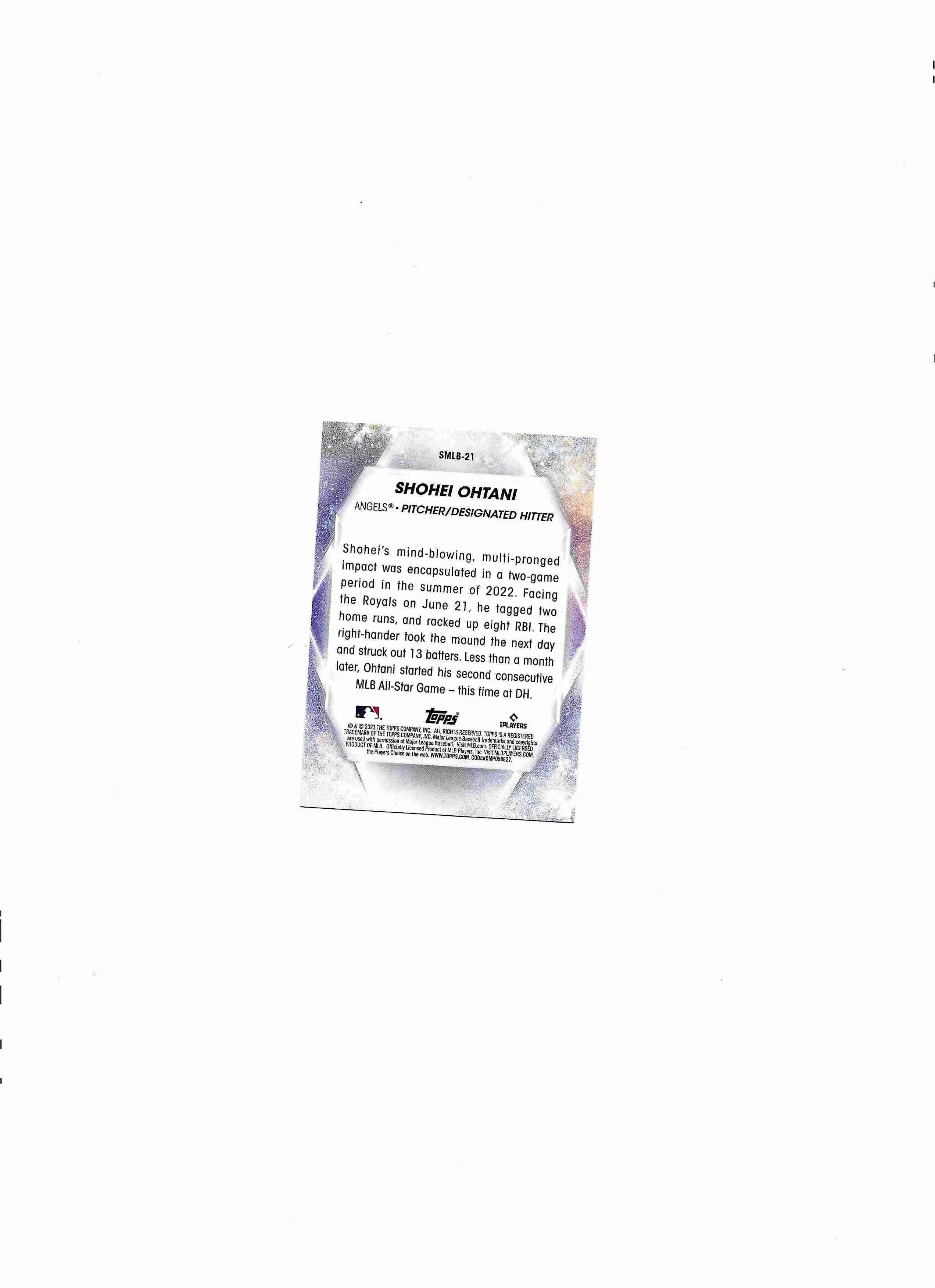 2023 TOPPS sHOHEI OHTANI STARS OF MLB #SMLB-21. ANGELS CARD IN EXCELLENT CONDITION.