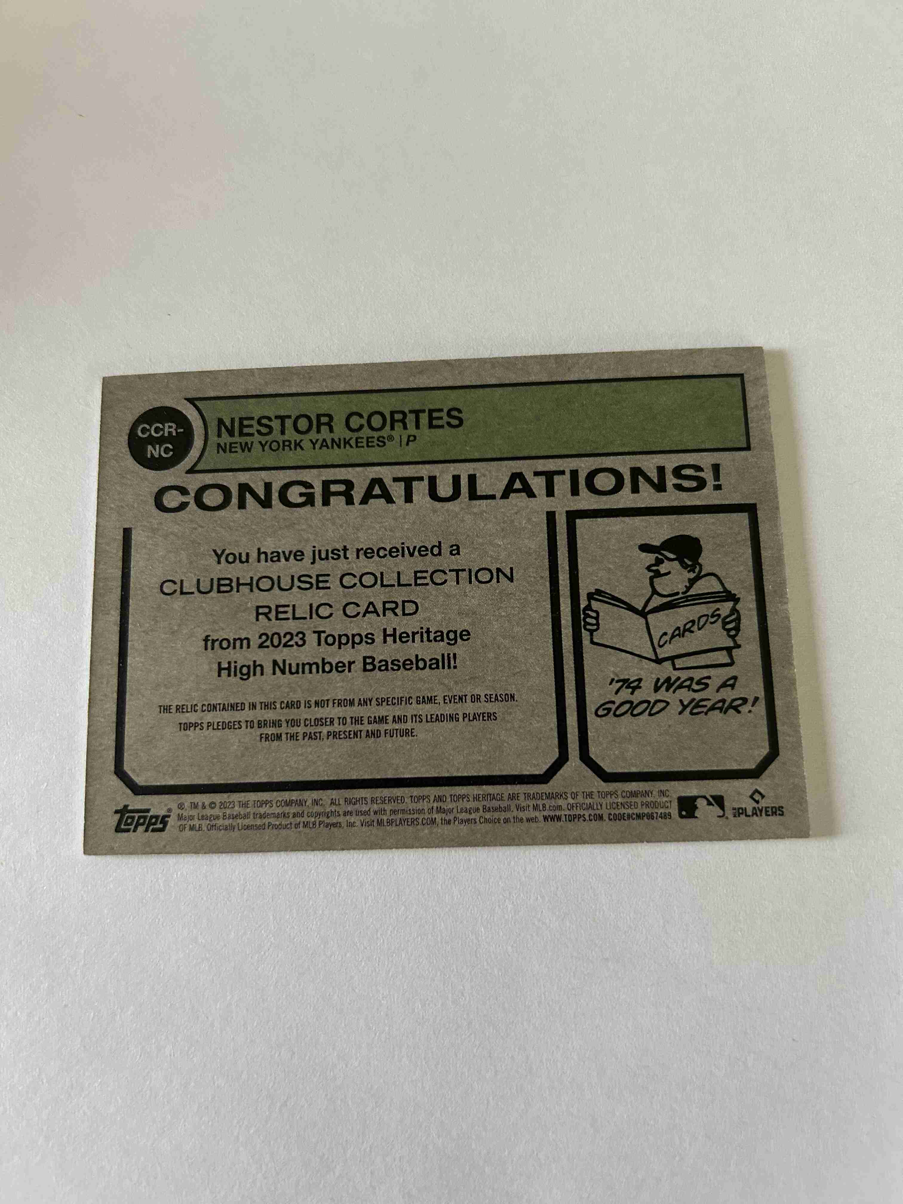 2023 TPS Heritage ccr-nc Nestor Cortes relic card