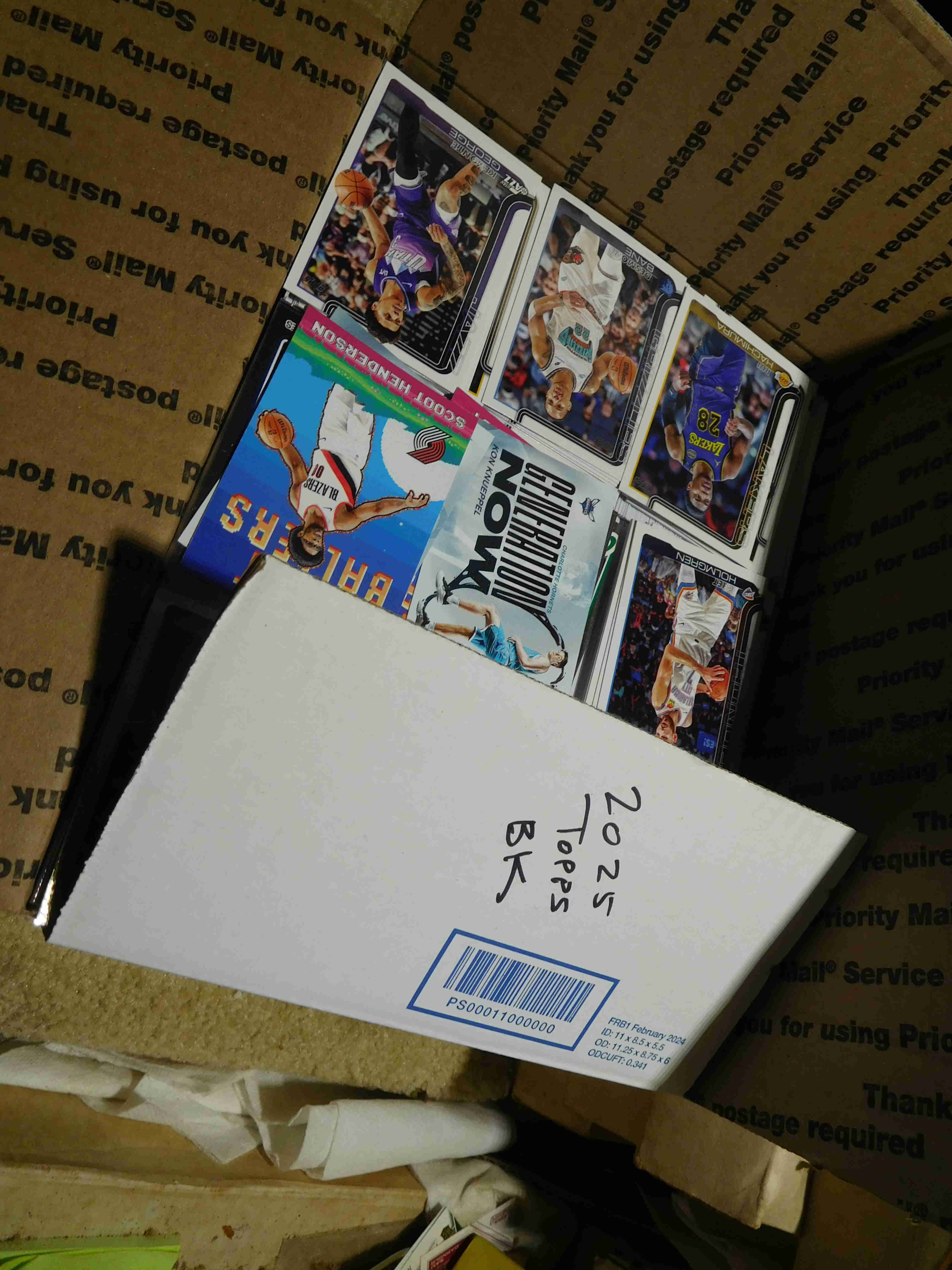 2400 (estimated) 2025 Topps BASKETBALL Card Lot. Packed in a Medium Flat Rate Box. These are customer leftovers so you never know what is in there. WE HAVE Not Double Checked these For Short Prints. There are a few inserts sprinkled in as well. Some customers (well most) take the major stars, but these have not been otherrwise picked through. At the Sportlots minimum of 20 cents per card this equates to at least $480 worth of value for your store. Thanks and good luck with your bidding. We will continue to list our bulk leftovers here moving forward. We have a bunch of recent years stuff that will be listed for the 3 major sports