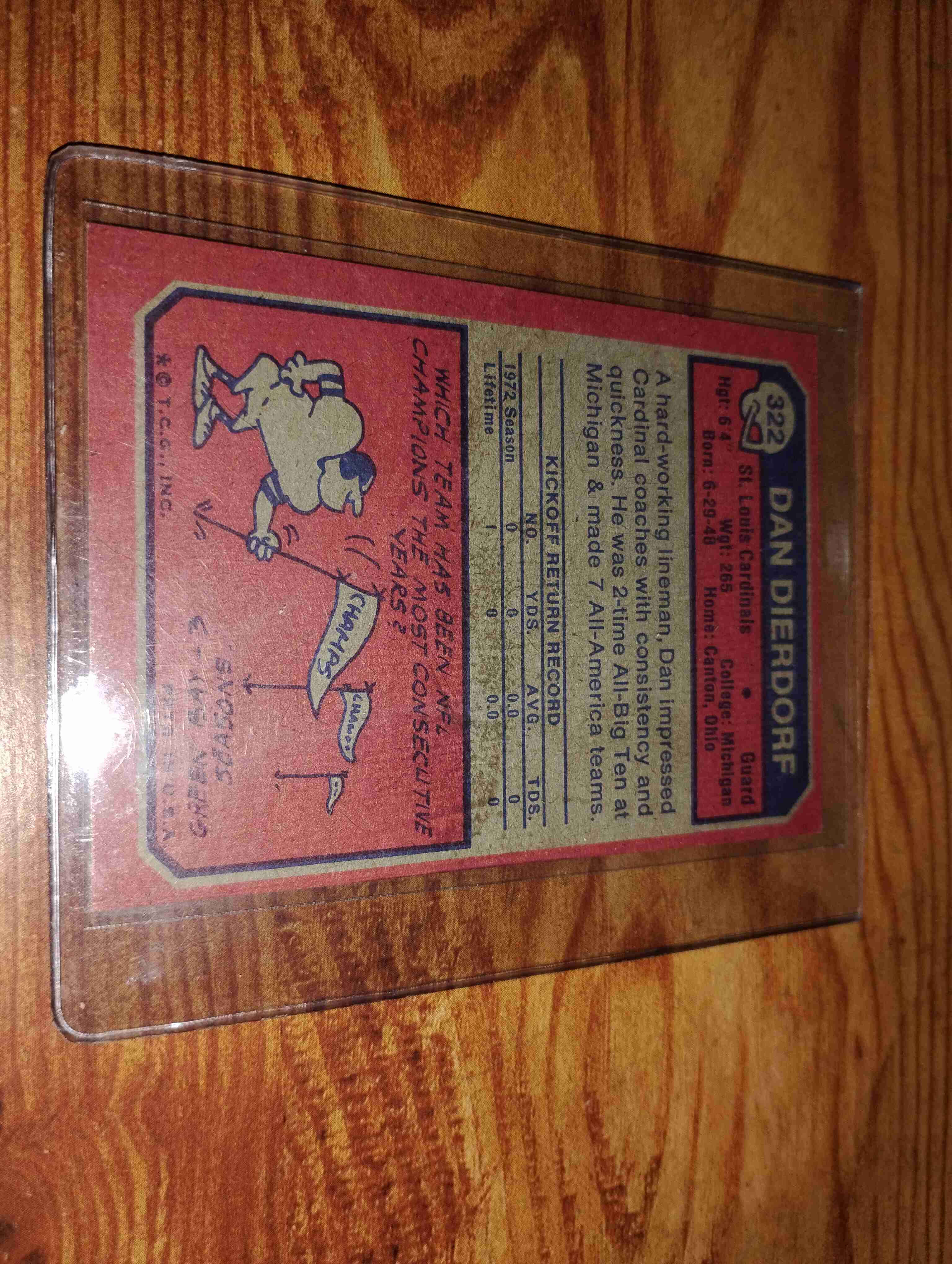 DAN DIERDORF 1973 TOPPS ROOKIE CARD #322