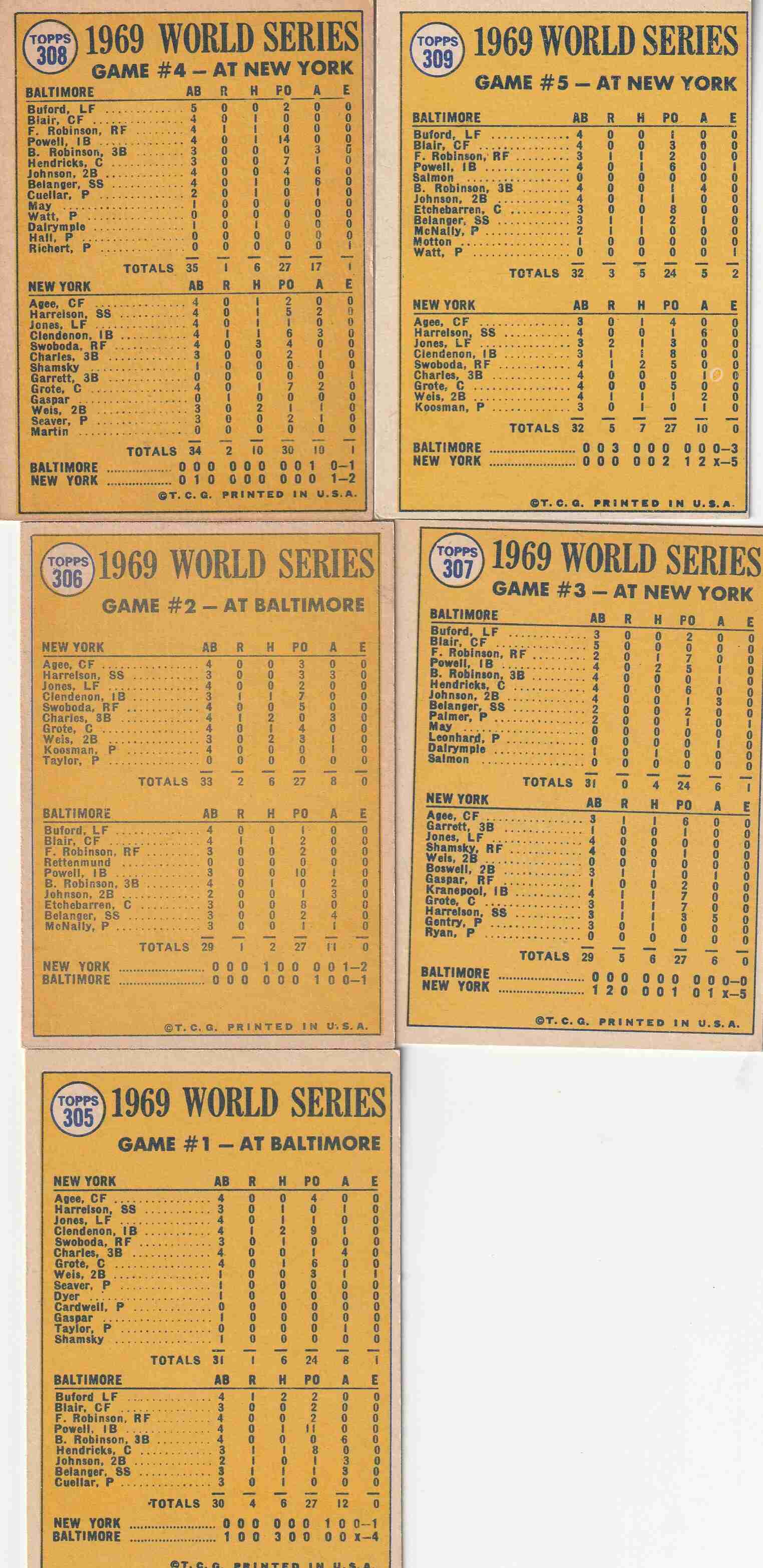 5-1970 Topps Sporting News "69 WS #'s 305 306 307 308 309