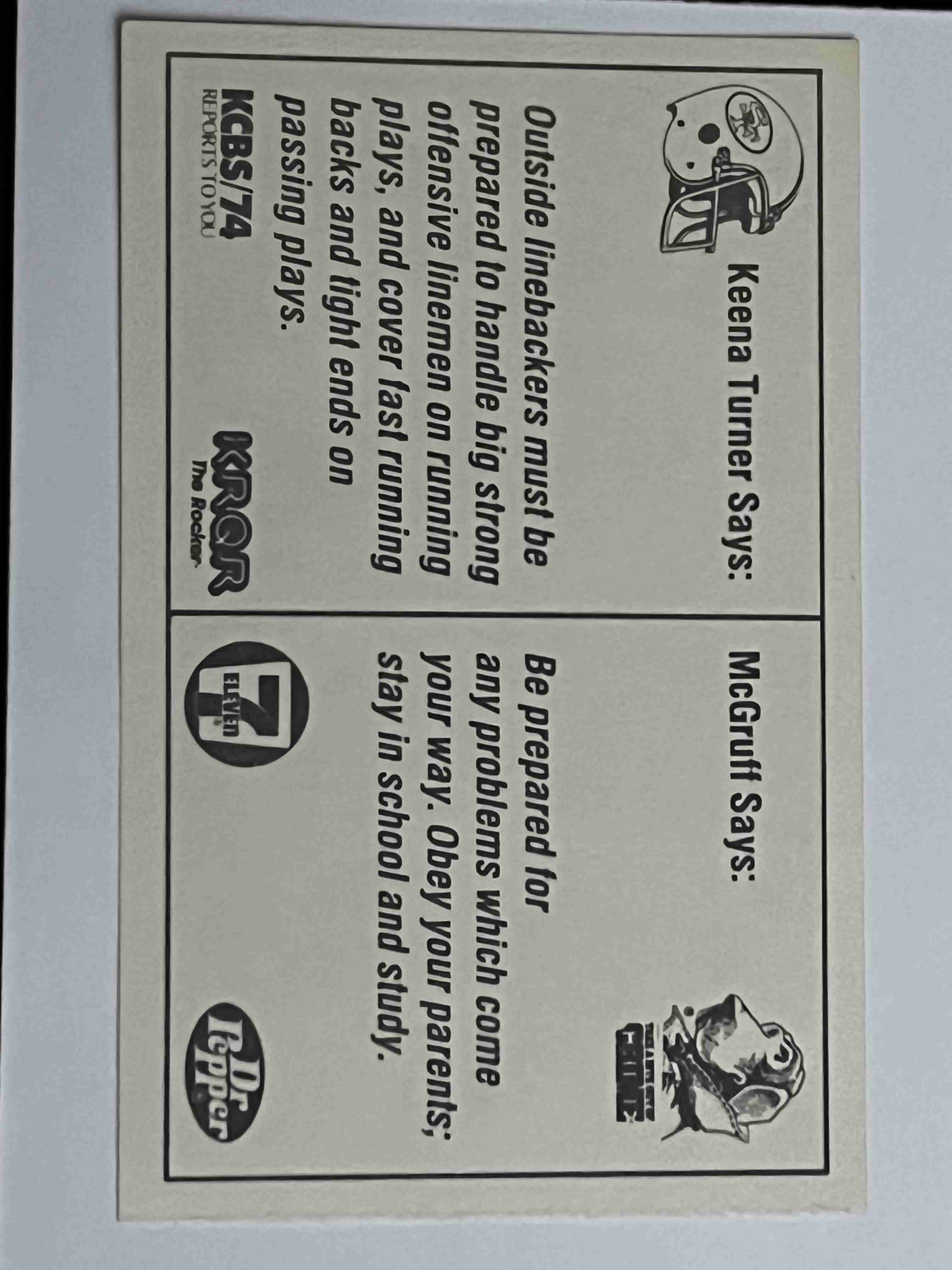 1984 or 1985 Keena Turner San Francisco 49ers Police 7/11 McGruff Crime Dog Card he signed through the mail for me a few years ago. Free Shipping Winning bidder receives a free gift.