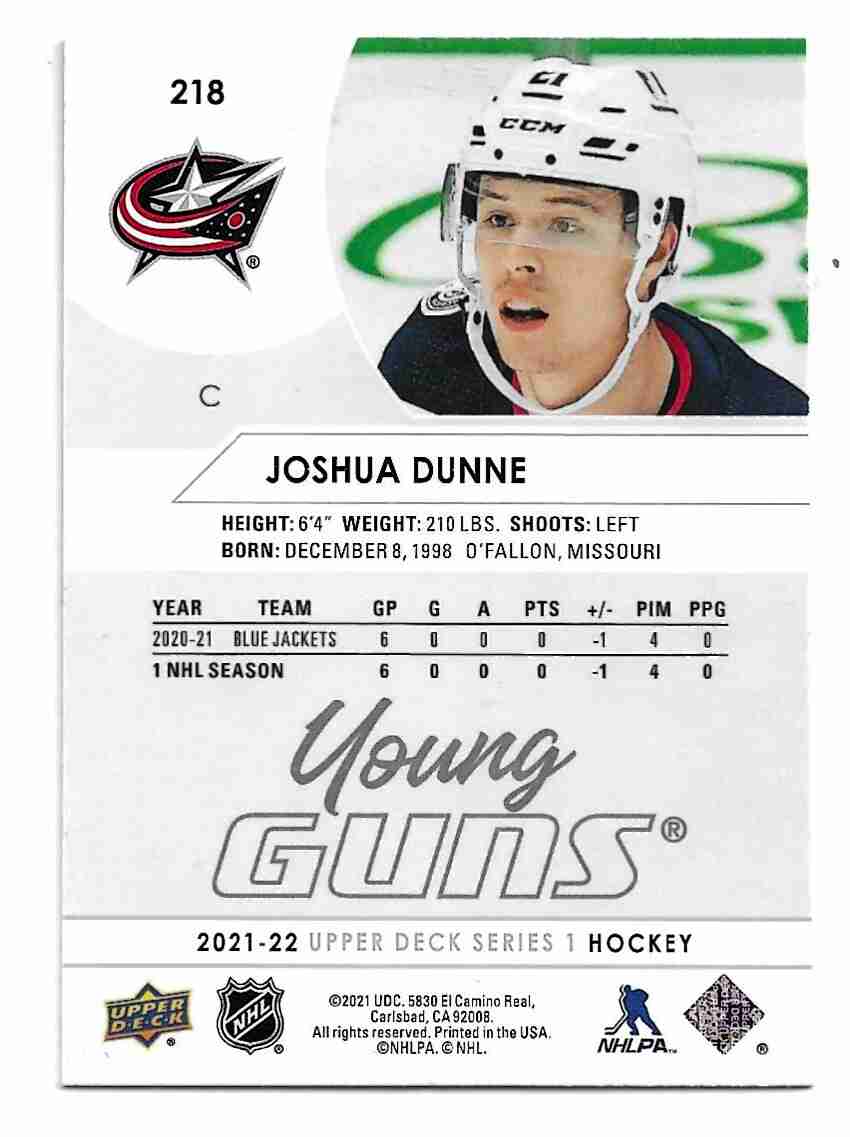 2021-22 UPPER DECK YOUNG GUNS #218 JOSHUA DUNNE (RC)
