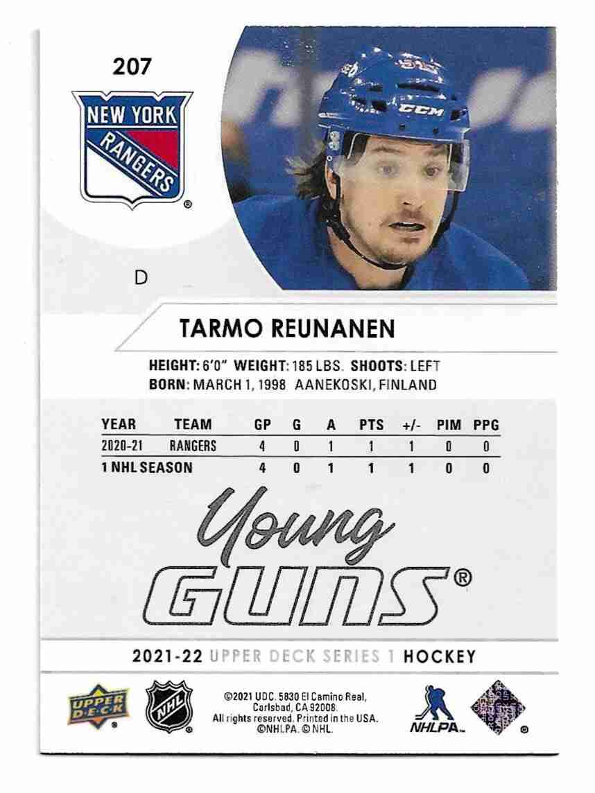 2021-22 UPPER DECK YOUNG GUNS #207 TARMO REUNANEN (RC)