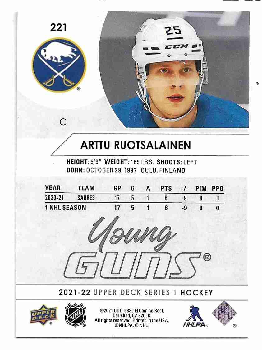 2021-22 UPPER DECK YOUNG GUNS #221 ARTTU RUOTSALAINEN (RC)