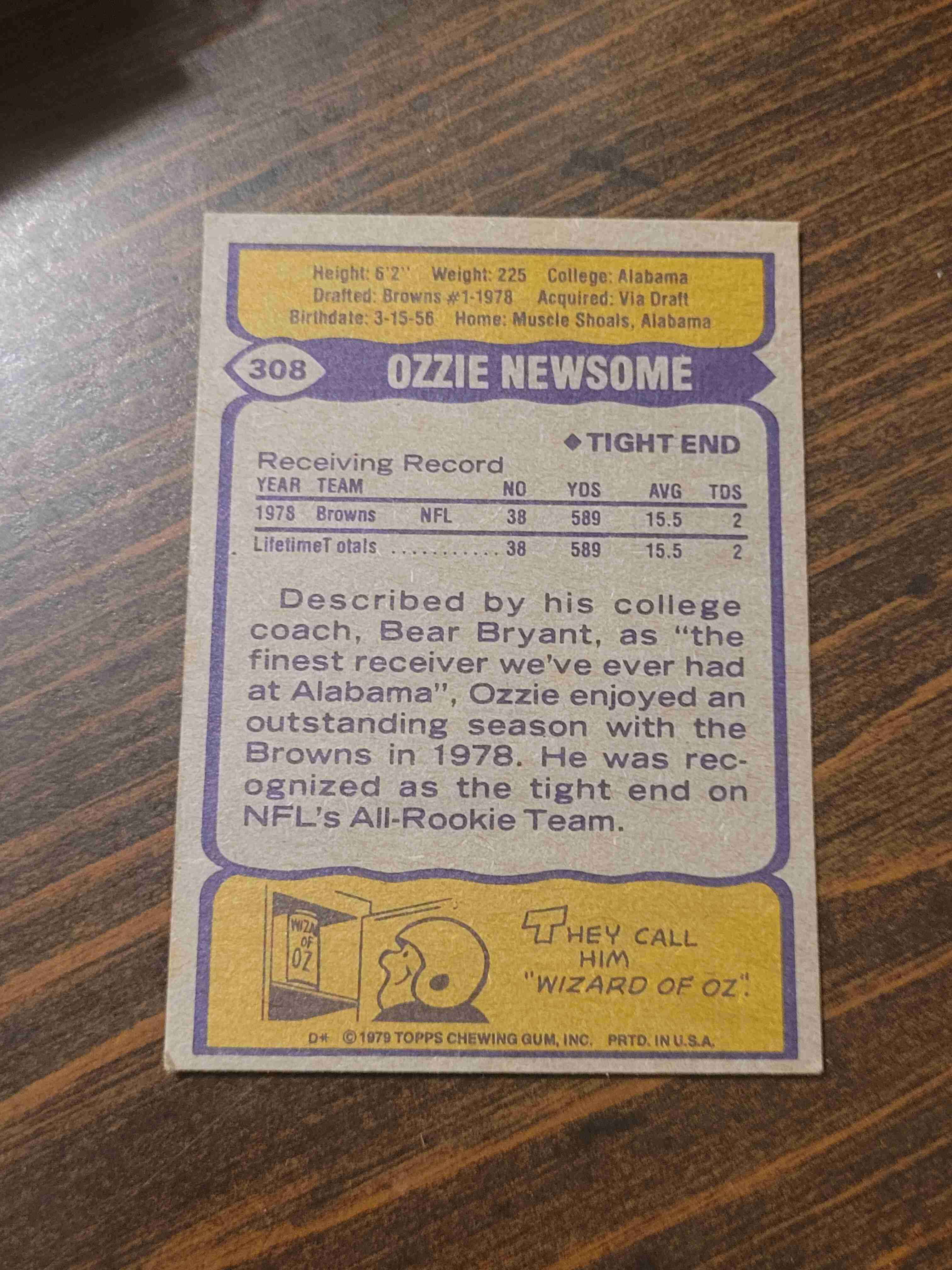 1979 TOPPS OZZIE NEWSOME #308