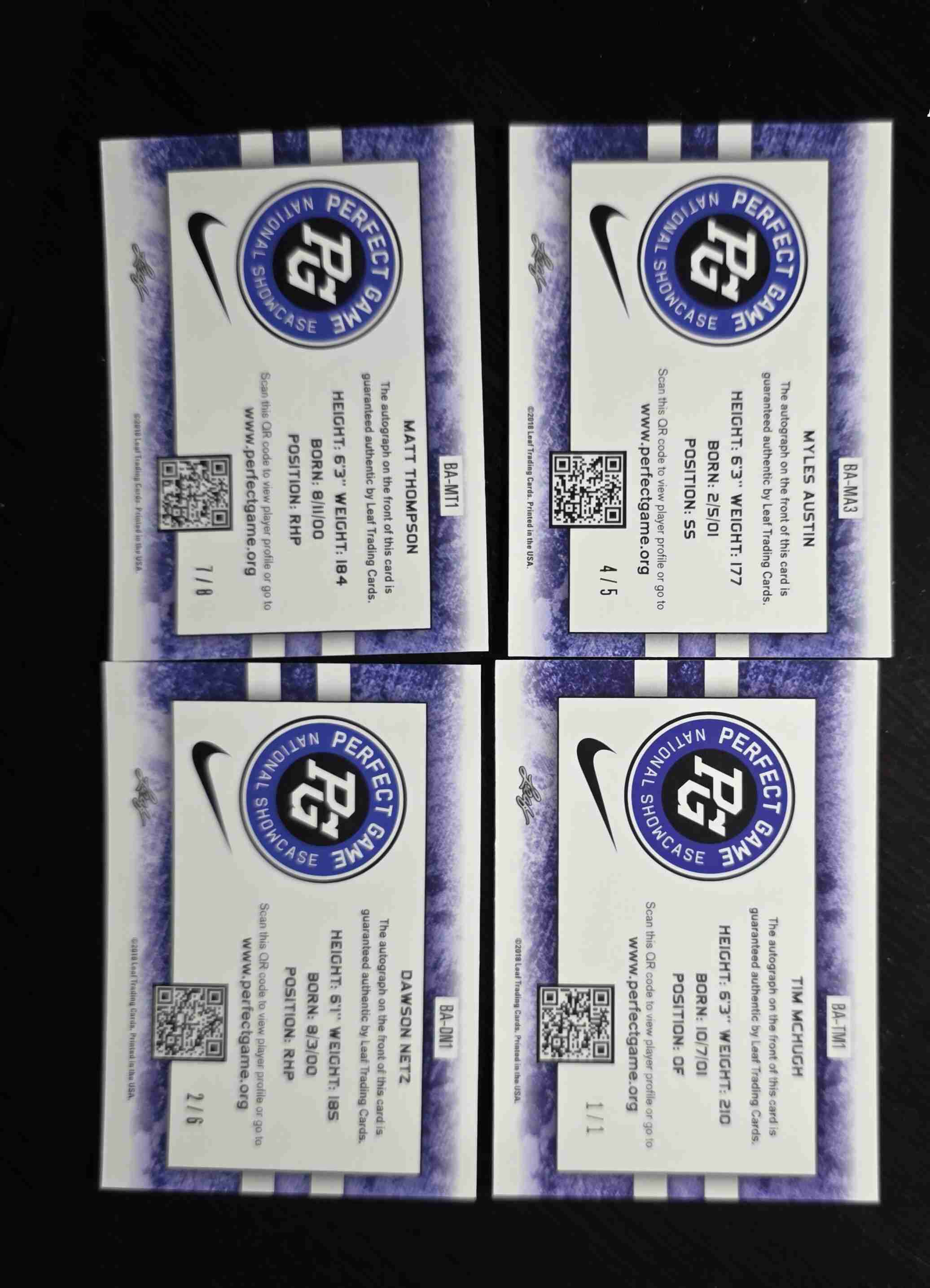Included are: Tim McHugh #1/1, Myles Austin, Matt Thompson, Dawson Netz