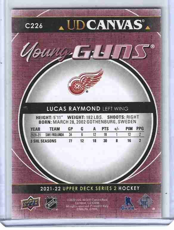 2021/22 UD 2 C226 LUCAS RAYMOND YOUNG GUNS CANVAS