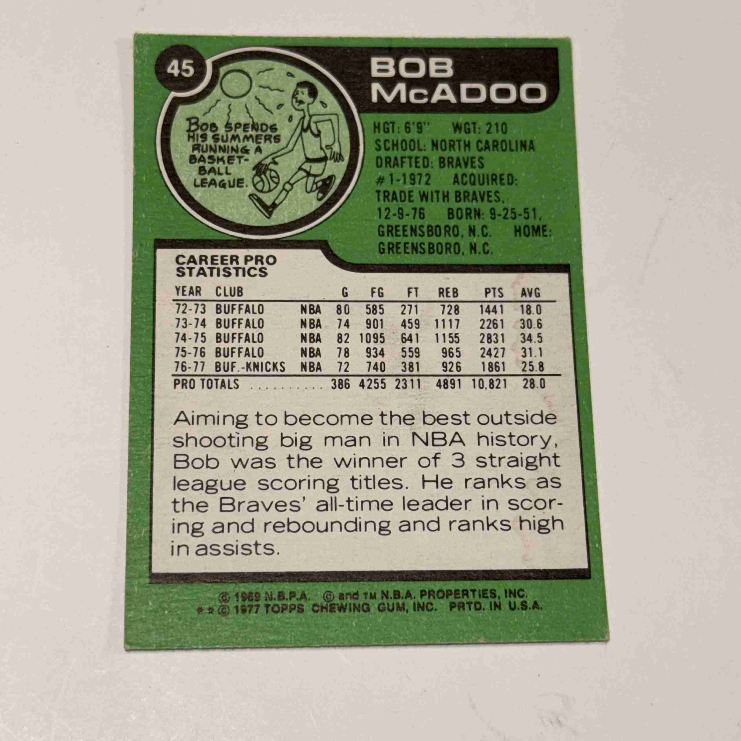 1977-78 Topps Bob McAdoo New York Knicks #45