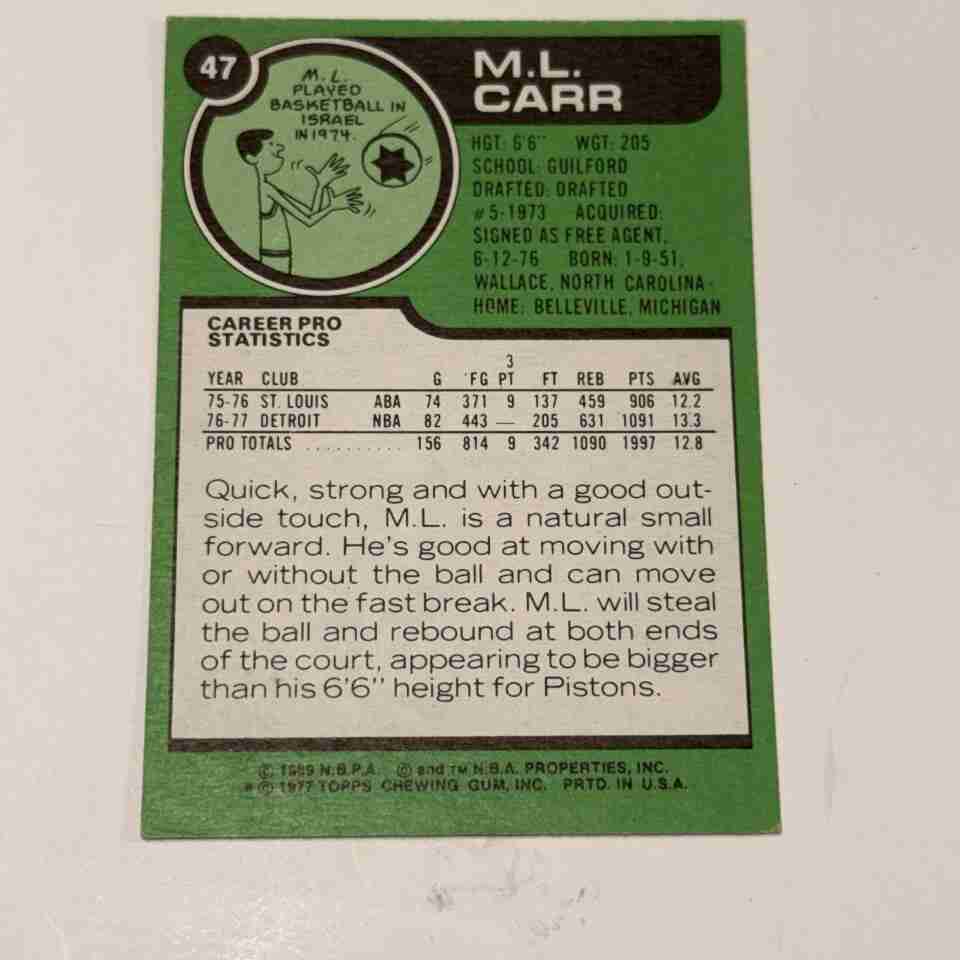 M.L. Carr, 1977-78 Topps, #47, Detroit Pistons, RC