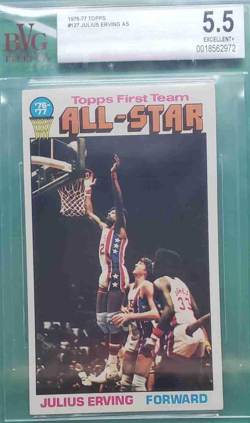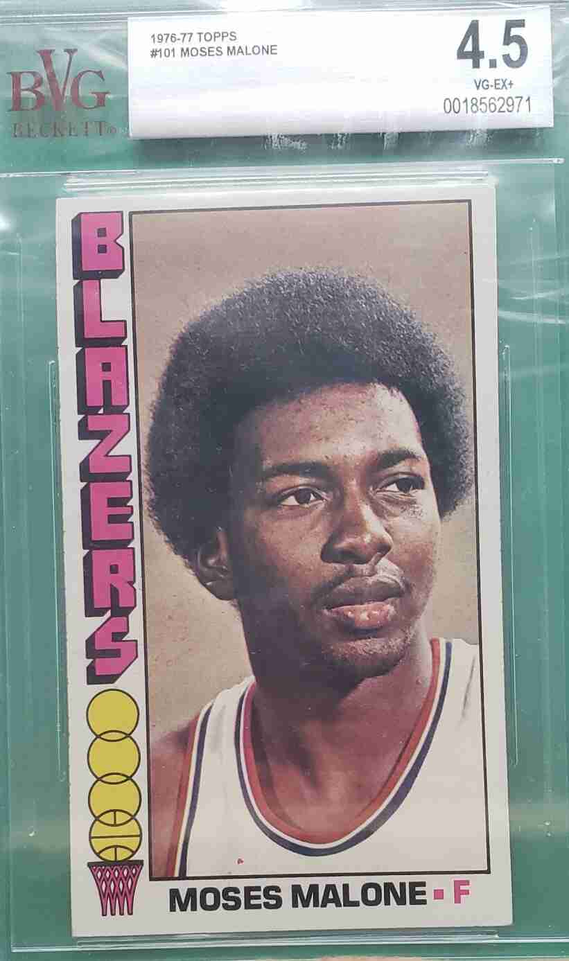 1976-77 Topps basketball – lot of 2 cards [SL148] #127 Julius Erving AS GRADED BGS 5.5 #101 Moses Malone GRADED BGS 4.5